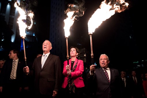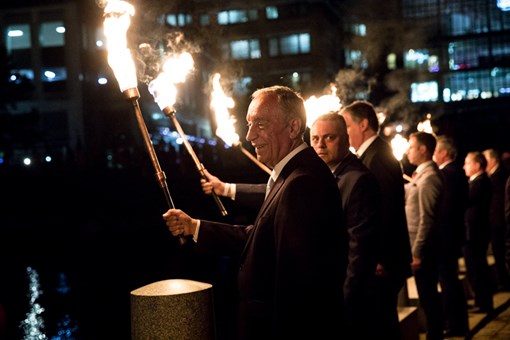 Acompanhado pelo Primeiro-Ministro, António Costa, pela Governadora do Estado de Rhode Island, Gina Raimondo, e pelo Presidente da Comissão Organizadora do Dia de Portugal em Providence, Orlando Mateus, o Presidente Marcelo Rebelo de Sousa participou no Festival WaterFire transportando uma tocha que simboliza o espírito de Portugal.