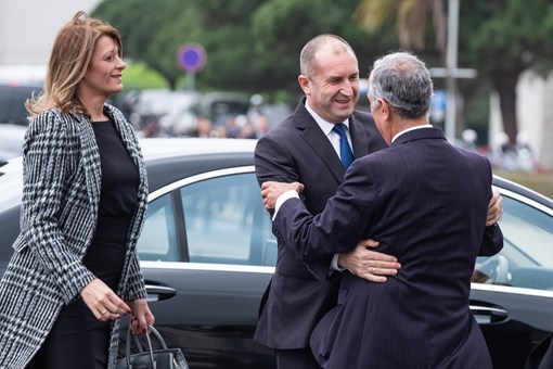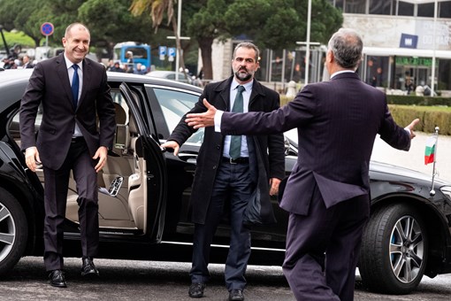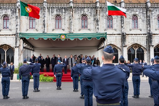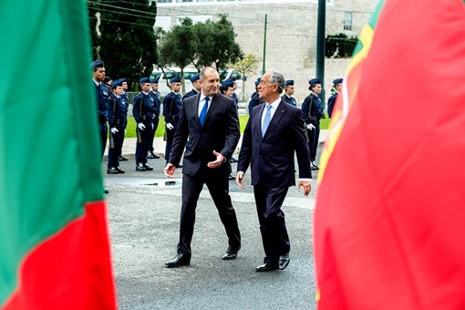 O Presidente da República da Bulgária, Rumen Radev, e Senhora Desislava Radeva, foram recebidos na Praça do Império - Mosteiro dos Jerónimos, pelo Presidente Marcelo Rebelo de Sousa, numa cerimónia oficial de boas-vindas, onde foram prestadas Honras Militares, com a execução dos Hinos Nacionais dos dois países e salva de 21 tiros, a que se seguiu revista e desfile da Guarda de Honra.