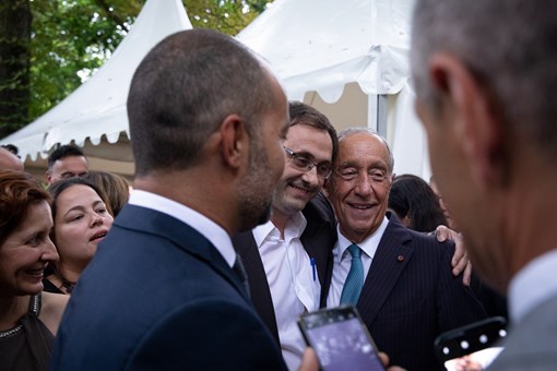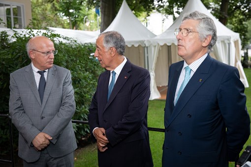 Na Residência do Embaixador de Portugal em Berlim, o Presidente da República participou, acompanhado pelo Ministro dos Negócios Estrangeiros, Augusto Santos Silva, num encontro com cerca de três centenas de portugueses residentes na capital alemã.