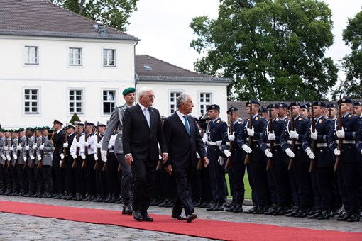 No início do segundo dia da Visita Oficial à Alemanha, o Presidente Marcelo Rebelo de Sousa foi recebido no palácio presidencial de Bellevue, em Berlim, pelo Presidente da República Federal da Alemanha, Frank-Walter Steinmeier.