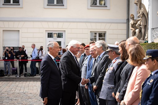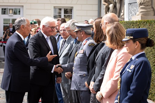 Depois de prestadas as honras militares, e saudado um grupo de jovens de uma escola bilíngue luso-alemã, os Chefes de Estado mantiveram um encontro a sós nos jardins de Bellevue seguido de um almoço no qual brindaram, com as respetivas comitivas, à excelência do relacionamento bilateral.