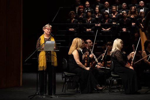 Após ter sido recebido à chegada pela Ministra da Cultura, Graça Fonseca, pela Coordenadora das Comemorações do Centenário de Sophia de Mello Breyner Andresen, Maria Andresen de Sousa Tavares, pelo Presidente do Conselho das Artes do Centro Nacional de Cultura, Guilherme d’Oliveira Martins, e pela Vereadora da Cultura da Câmara Municipal de Lisboa, Catarina Vaz Pinto, o Chefe de Estado dirigiu-se para o palco, onde Maria Andresen de Sousa Tavares usou da palavra.