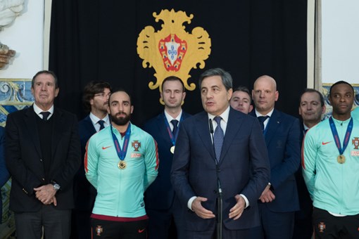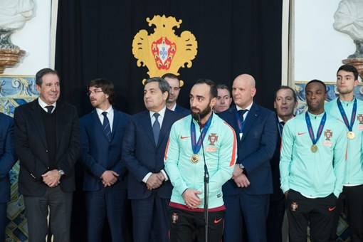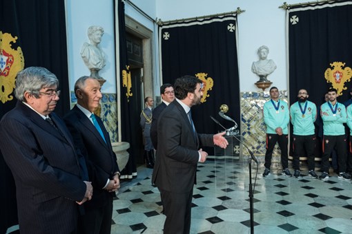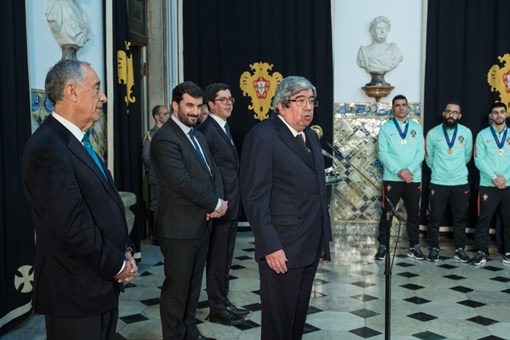 O Presidente Marcelo Rebelo de Sousa recebeu, no Palácio de Belém, a Seleção Nacional de Futsal, que se consagrou ontem Campeã Europeia da Modalidade.