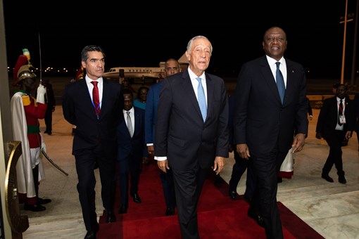 O Presidente Marcelo Rebelo de Sousa chegou ao Aeroporto Internacional de Abidjan, onde foi recebido pelo Ministro de Estado e da Defesa, Hamed Bakayoko, por outros membros do Governo, autoridades locais e chefes tradicionais, pelo Embaixador da Costa do Marfim em Lisboa, Embaixador Koffi Fana, e pelo Embaixador não-residente de Portugal em Abidjan, Embaixador Vítor Sereno, para uma Visita de Estado de três dias à Costa do Marfim.