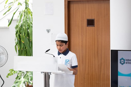 Após ter sido recebido pelo Diretor Escola e Presidente da Fundação Islâmica de Palmela, Rachid Ismael, pelo Diretor Pedagógico, Abdullah Seedat, pelo membro da Direção Pedagógica, Uwais Usman, pelo Presidente da Comunidade Islâmica de Lisboa, Abdool Vakil, e pelo Vice-Presidente da Comunidade Islâmica de Lisboa, Iacube Vali, o Presidente da República participou na Cerimónia de Homenagem aos funcionários da Escola, onde depois de ter sido recitado o Alcorão e da intervenção do Diretor Escola, foram entregues os Diplomas aos homenageados. A cerimónia terminou com a intervenção do Presidente da República que no final assinou o Livro de Honra da Escola.