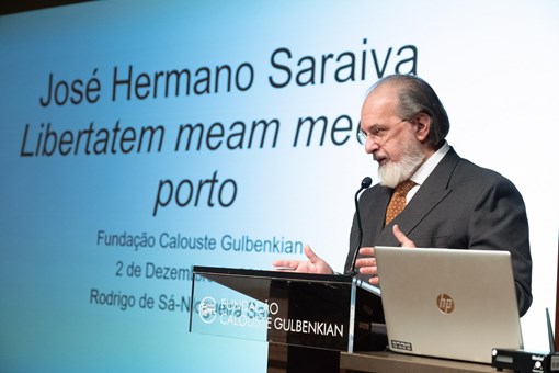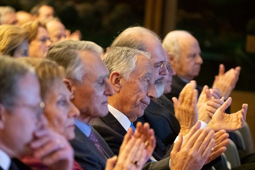 Recebido por Guilherme d’Oliveira Martins, Administrador da Fundação, antes do discurso do Presidente Marcelo Rebelo de Sousa usaram ainda da palavra o filho do homenageado, Rodrigo de Sá-Nogueira Saraiva, Artur Anselmo, da Academia das Ciências de Lisboa e Gonçalo Reis, Presidente da RTP.