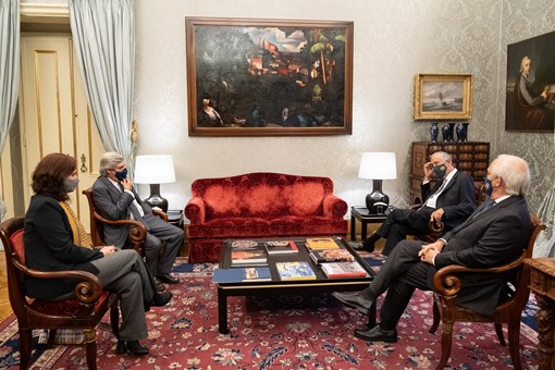 O Presidente Marcelo Rebelo de Sousa recebeu, em audiência no Palácio de Belém, uma delegação da nova direção política do Aliança (A). Estiveram presentes o Presidente e a Vice-Presidente da Direção Política Nacional do partido, Paulo Bento e Maria João Gaspar, respetivamente.