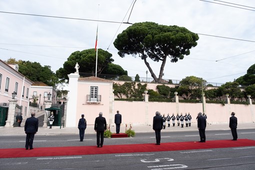 O Presidente da República presidiu, no Palácio de Belém, à Cerimónia do Içar da Bandeira Nacional em Dia de Luto Nacional e homenagem a todos os falecidos, em especial às vítimas da pandemia da doença Covid-19.