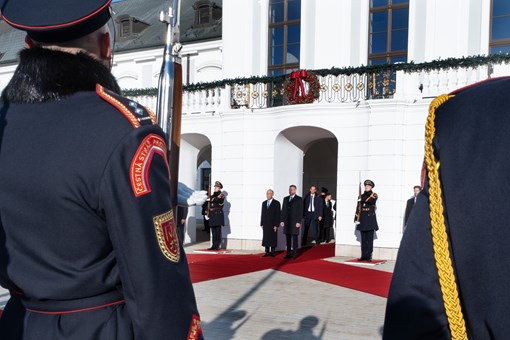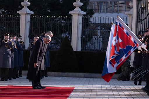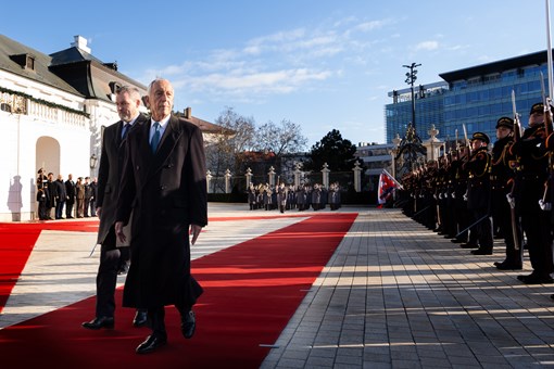 Na sua chegada à Eslováquia, o Presidente da República Marcelo Rebelo de Sousa foi recebido pelo seu homólogo Eslovaco, Peter Pellegrini, no Palácio Presidencial em Bratislava.