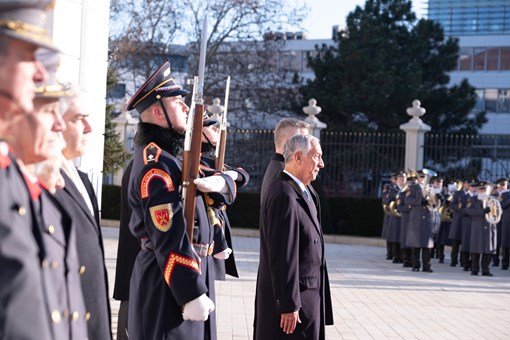 Antes da reunião entre os dois Chefes de Estado, o Presidente da República recebeu honras militares, passou revista à Guarda de Honra no exterior do Palácio e já no interior assinou o livro de honra no Salão Nobre.