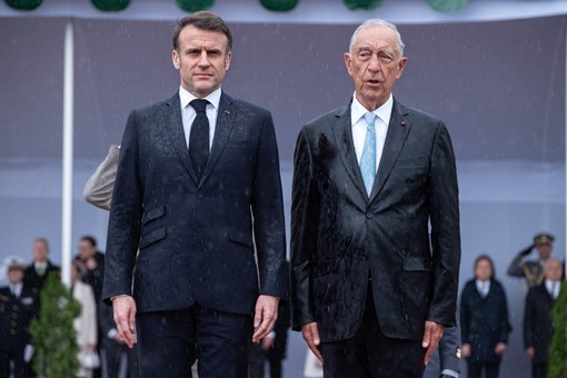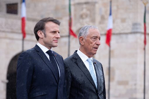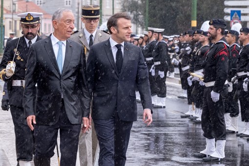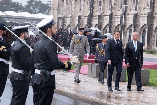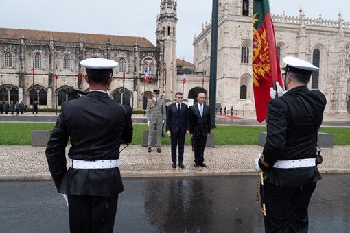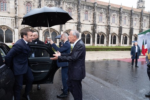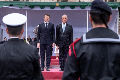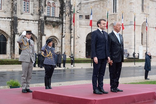 O Presidente da República recebeu, na Praça do Império - Mosteiro dos Jerónimos em Lisboa, o Presidente da República Francesa, Emmanuel Macron, e Senhora, Brigitte Macron, numa cerimónia oficial de boas-vindas que deu início à Visita de Estado a Portugal do Chefe de Estado da França.