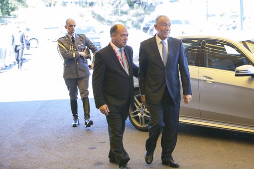 O Presidente Marcelo Rebelo de Sousa conviveu com atletas, organizadores e patrocinadores, tendo assistido ao início do encontro entre o português Gastão Elias e o francês Paul-Henri Mathieu.