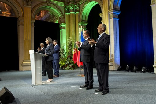No Salão de Festas da Câmara de Paris, após o Presidente da República ter cumprimentado os agraciados, os feridos e os familiares das vítimas dos ataques de 13 de novembro de 2015 em Paris, e perante a Comunidade Portuguesa deu-se início à Cerimónia Comemorativa do Dia de Portugal.