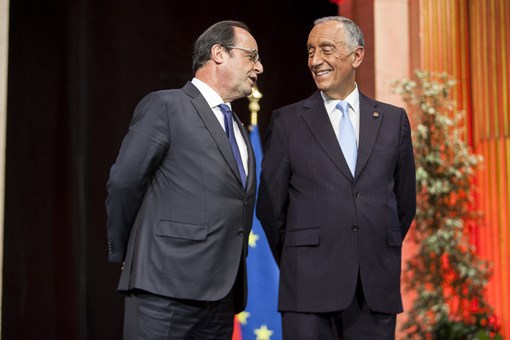 Após as intervenções, foram executados os hinos nacionais dos dois países, e deu-se início à cerimónia de imposição de insígnias aos 4 cidadãos nacionais, residentes em Paris, e cuja ação na noite de 13 de novembro de 2015 foi decisiva no socorro às vítimas do ataque terrorista no “Bataclan”. José Gonçalves, Manuela Gonçalves, Margarida de Santos Sousa e Natália Teixeira Syed receberam as insígnias de Cavaleiro/Dama da Ordem da Liberdade, ordem que se destina a distinguir serviços relevantes prestados em defesa dos valores da Civilização, em prol da dignificação da Pessoa Humana e à causa da Liberdade.