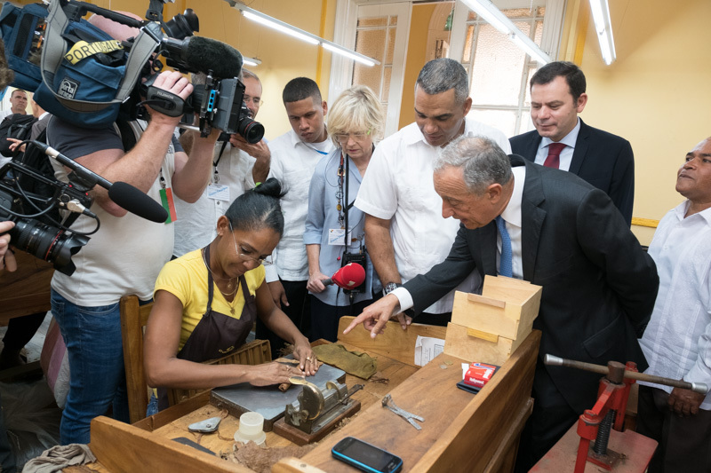 No início do segundo dia da Visita de Estado a Cuba, o Presidente Marcelo Rebelo de Sousa visitou, em Havana, a fábrica de charutos Cohiba.