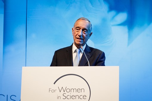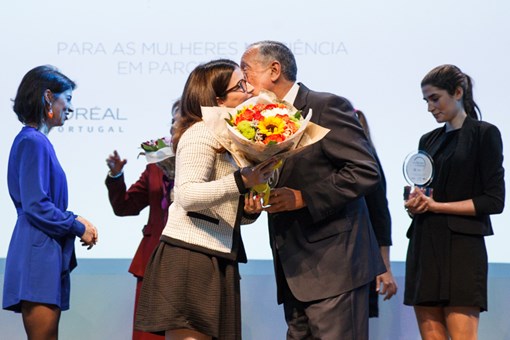 O Presidente Marcelo Rebelo de Sousa presidiu à cerimónia de entrega das Medalhas de Honra L’Oréal Portugal para as Mulheres na Ciência, onde foram premiadas as cientistas Ana Rita Marques, Maria Inês Almeida, Isabel Veiga e Patrícia Baptista.