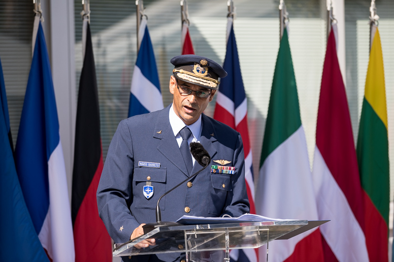 Após a reunião deu-se início à cerimónia com a integração das bandeiras e a execução do Hino Nacional, seguiram-se as intervenções do Comandante do JALLC, Brigadeiro-General Mário Barreto, do SACT, General Denis Mercier, e do Presidente da República.