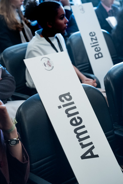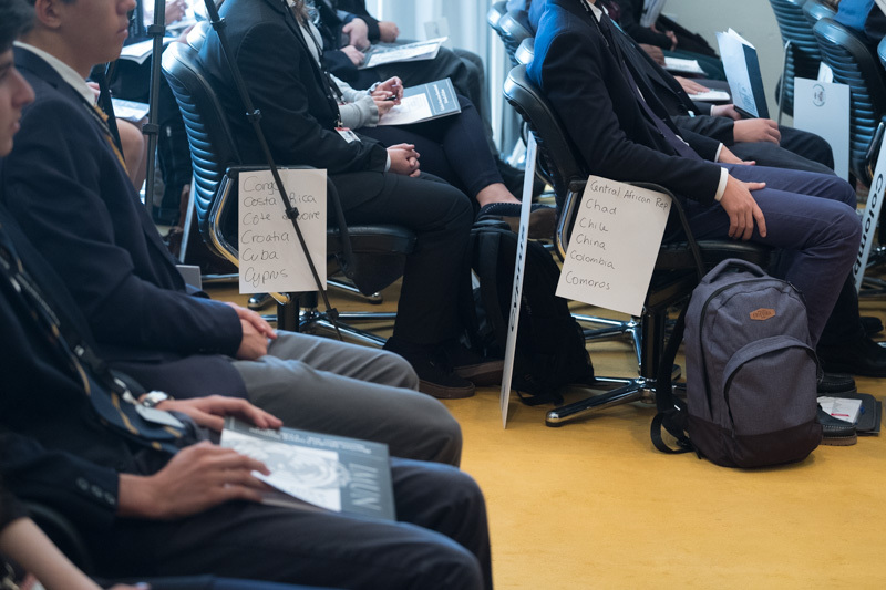 Após ter sido recebido pelo Presidente do Conselho Administrativo da Fundação Escola Americana de Lisboa (FEAL), Michael de Mello, deu-se inicio, na Sala Almada Negreiros, à Sessão de Abertura, onde usaram da palavra a Diretora da Carlucci American International School of Lisbon (CAISL), Blannie Curtis, e no papel de Secretária-Geral das Nações Unidas, Sofia Lacerda.