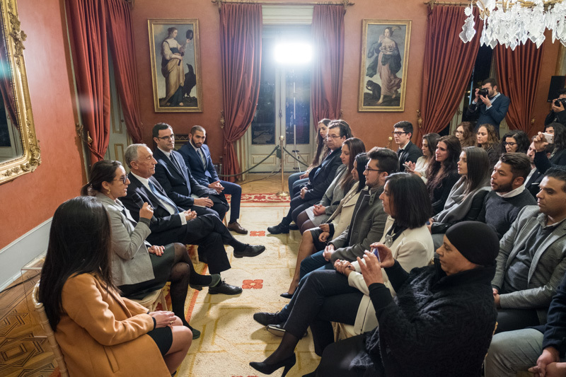 Após as palavras do Presidente da República seguiu-se um período de perguntas e respostas. No encontro estiveram presentes 29 dos 32 bolseiros(as) do ano letivo 2017/18 e representantes das associações parceiras.