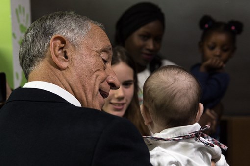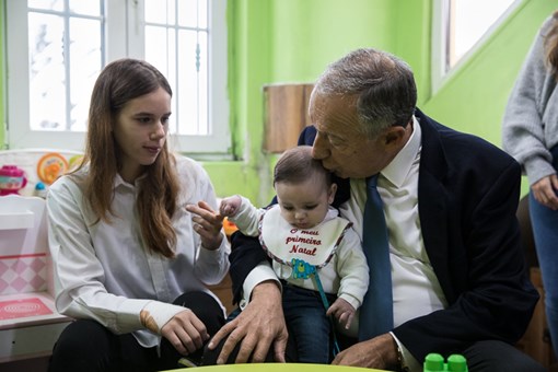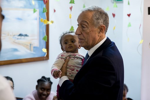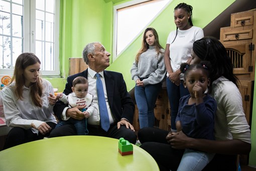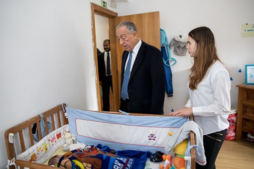 Recebido pela Presidente da Direção da Ajuda de Mãe, Madalena Teixeira Duarte, e pela Responsável da “Casa João Paulo II”, Andreia Santos, o Presidente da República ficou a conhecer as instalações, tendo passado pela sala de atividades e pelos quartos, terminando a visita na sala de estar onde conviveu com as jovens mães e respetivos filhos, da “Casa João Paulo II”, mas também com utentes das outras duas residências da Ajuda de Mãe.