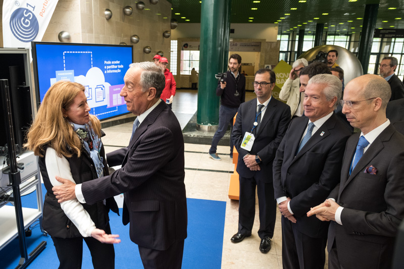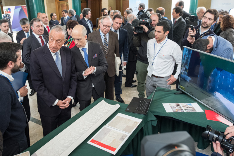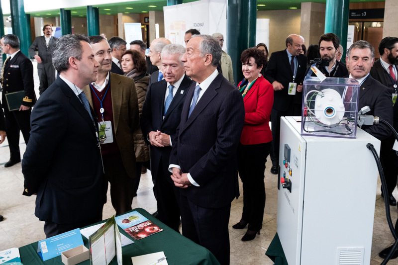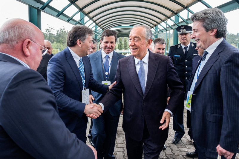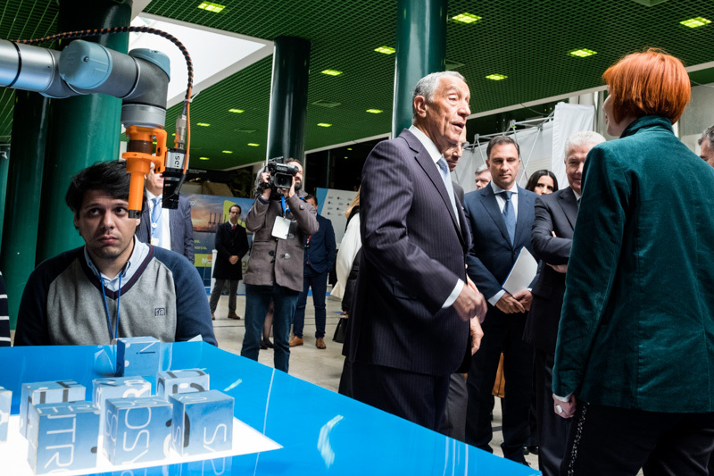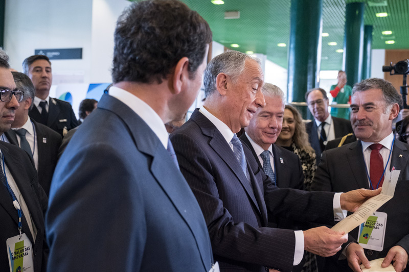 À chegada, e antes da sessão, o Presidente da República visitou a área onde se encontravam expostos os produtos de diversas empresas.
