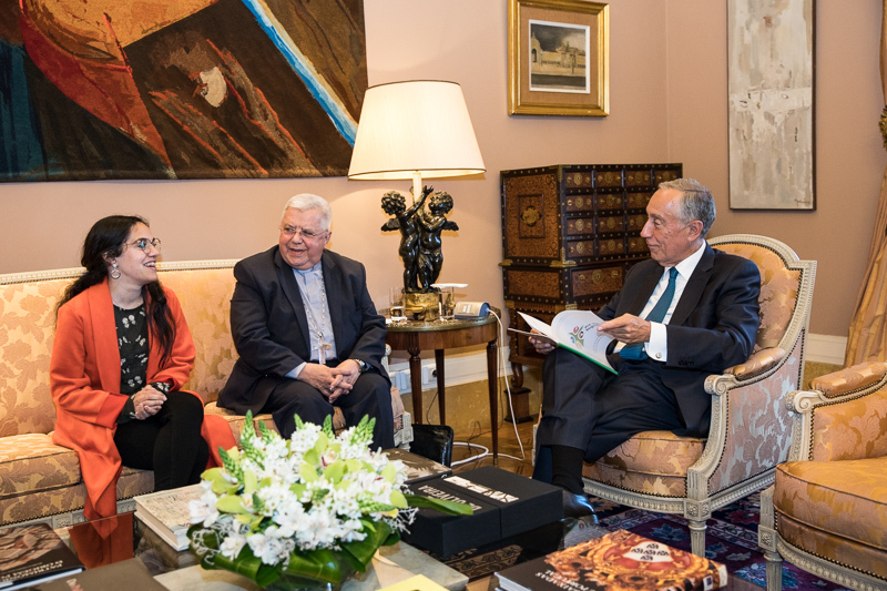 O Presidente da República recebeu em audiência os três jovens portugueses, Joana Serôdio, Rui Teixeira e Tomás Virtuoso, que estiveram presentes na Reunião Pré-Sinodal sobre "Os jovens, a Fé e o Discernimento Vocacional", que decorreu em Roma de 19 a 24 de março de 2018.