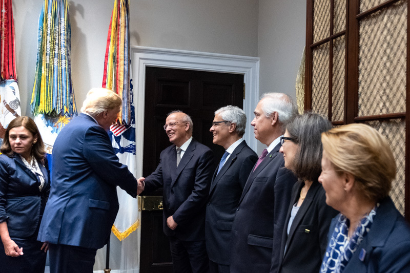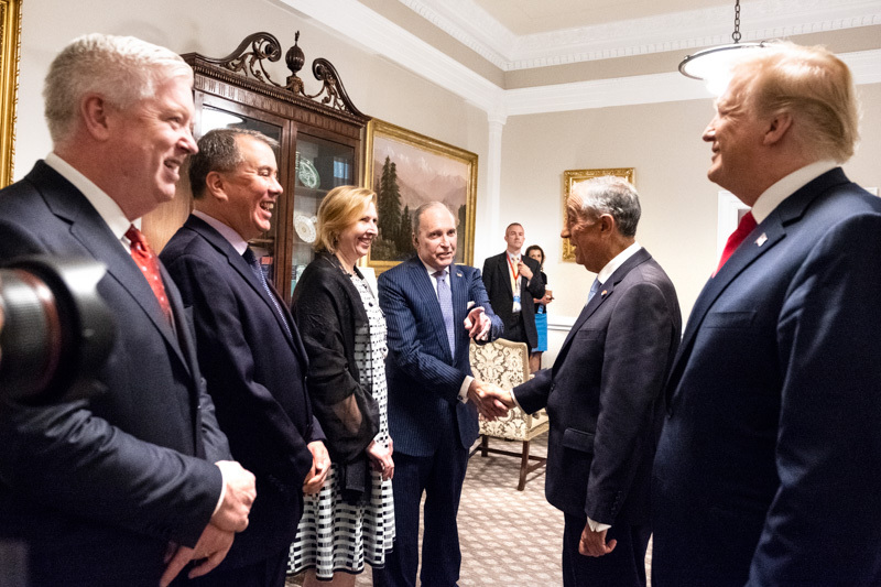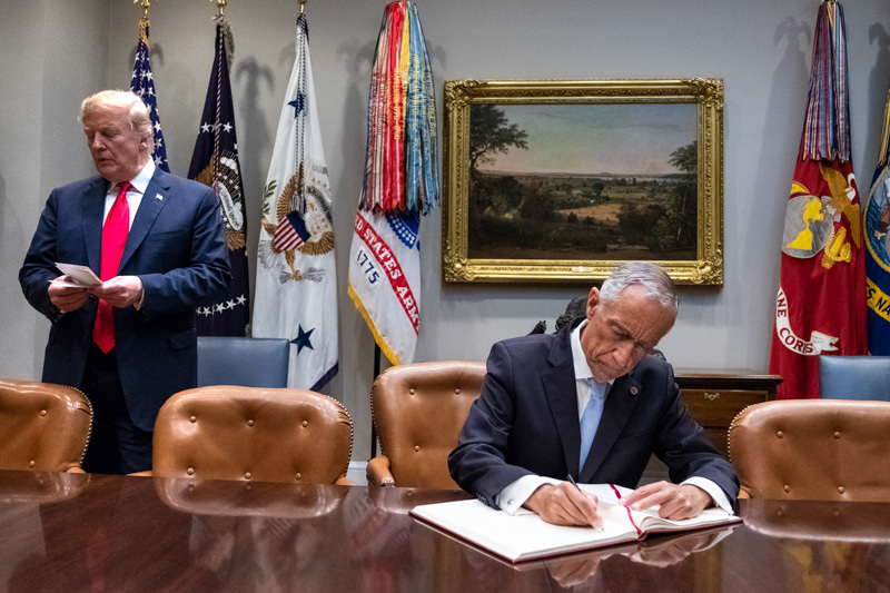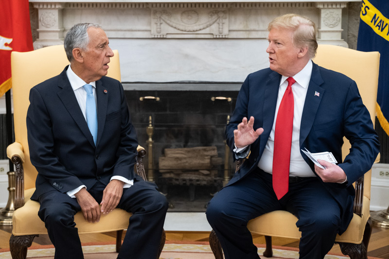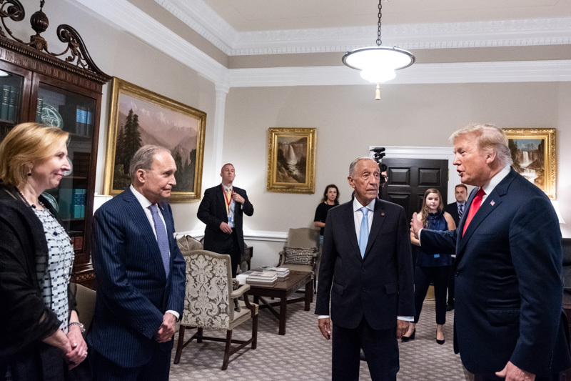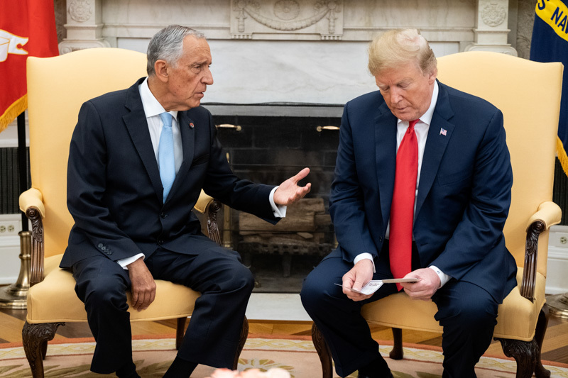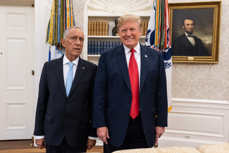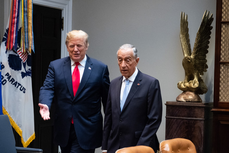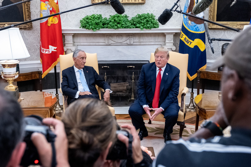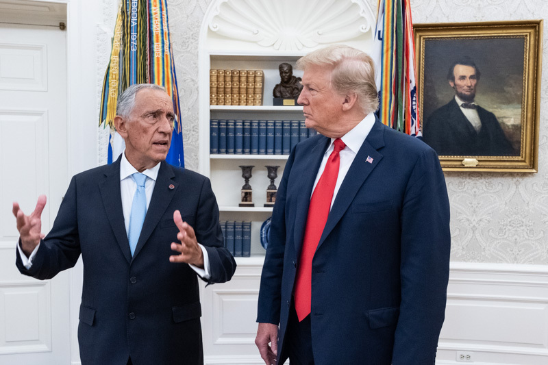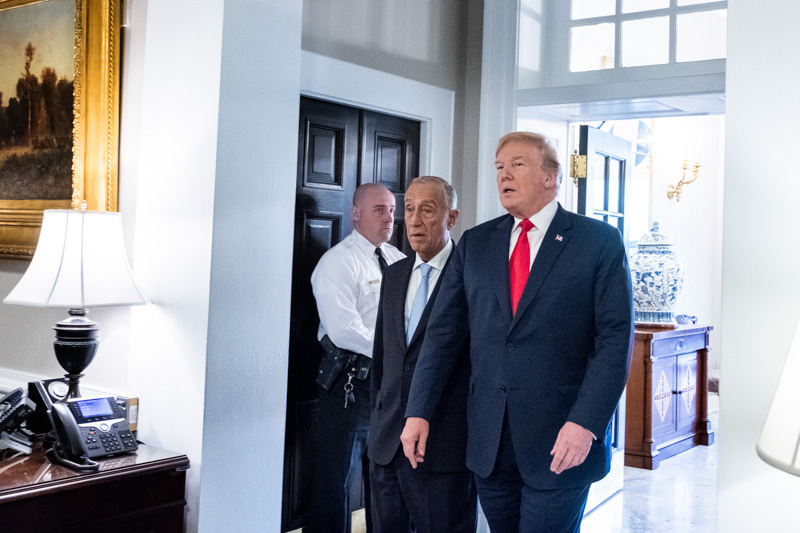 O Presidente Marcelo Rebelo de Sousa foi recebido na Casa Branca em Washington pelo Presidente dos Estados Unidos da América, Donald J. Trump, com que manteve uma reunião a sós na Sala Oval, tendo os dois Chefes de Estado prestado declarações no início da reunião.