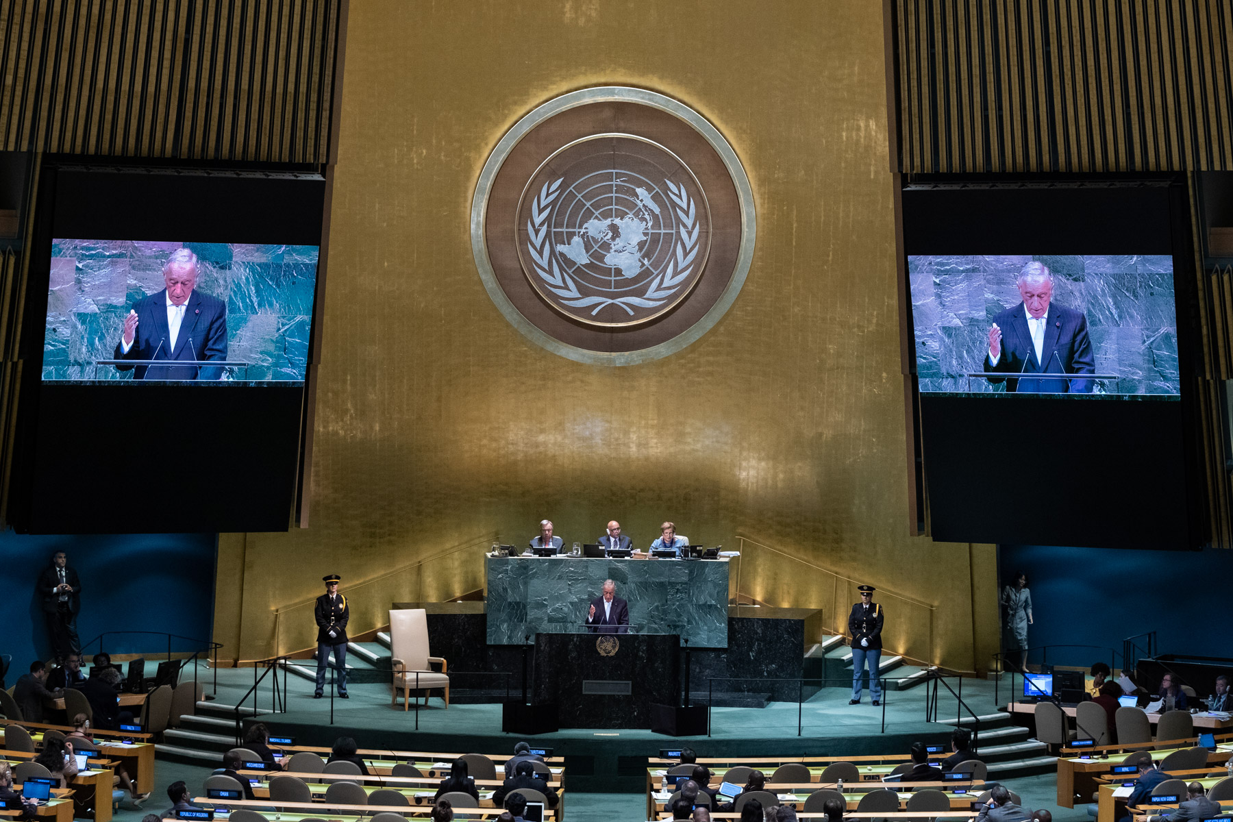 No final do último dia de trabalho em Nova Iorque, o Presidente da República discursou perante o Plenário da 73.ª Assembleia Geral da Organização das Nações Unidas.