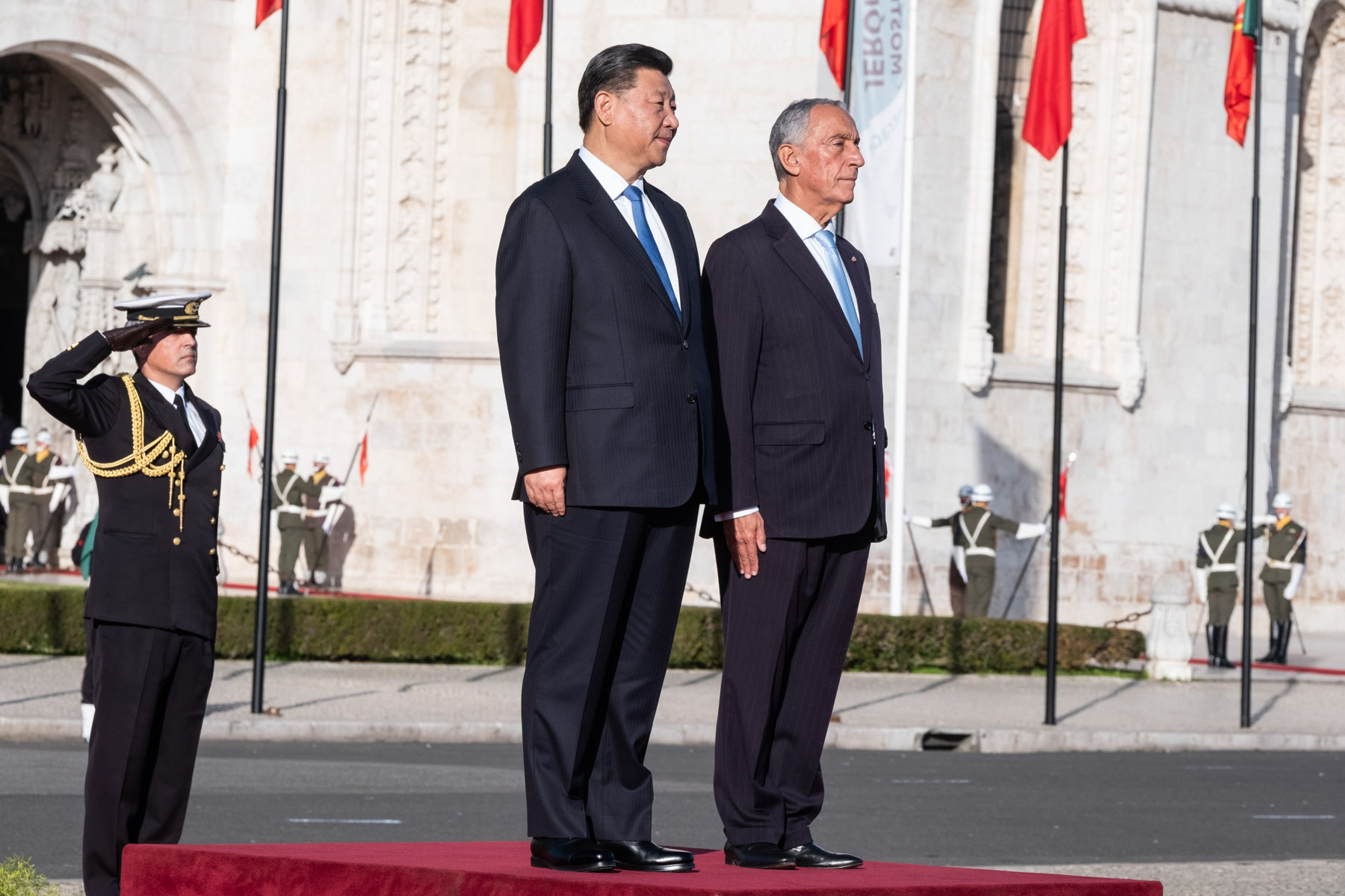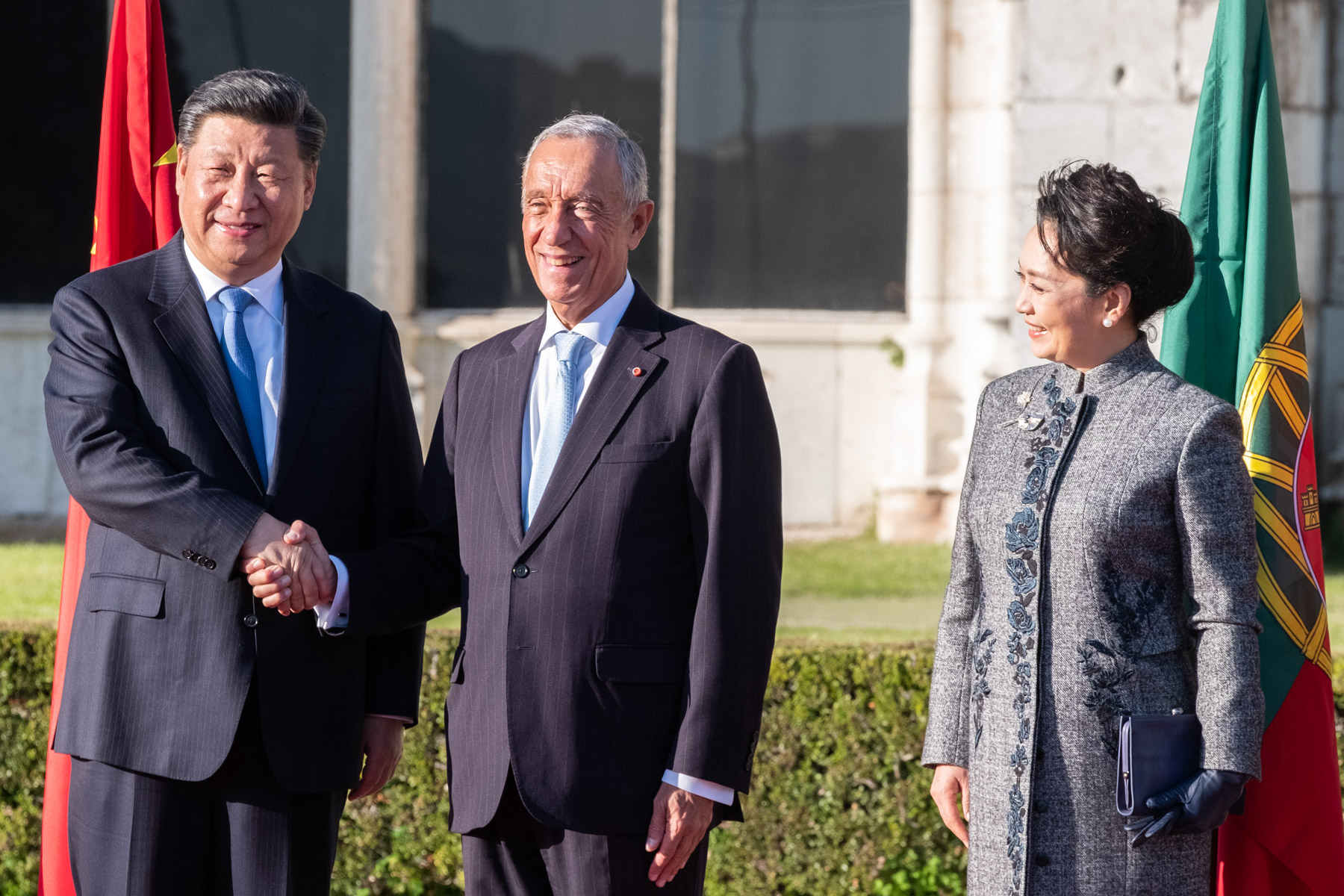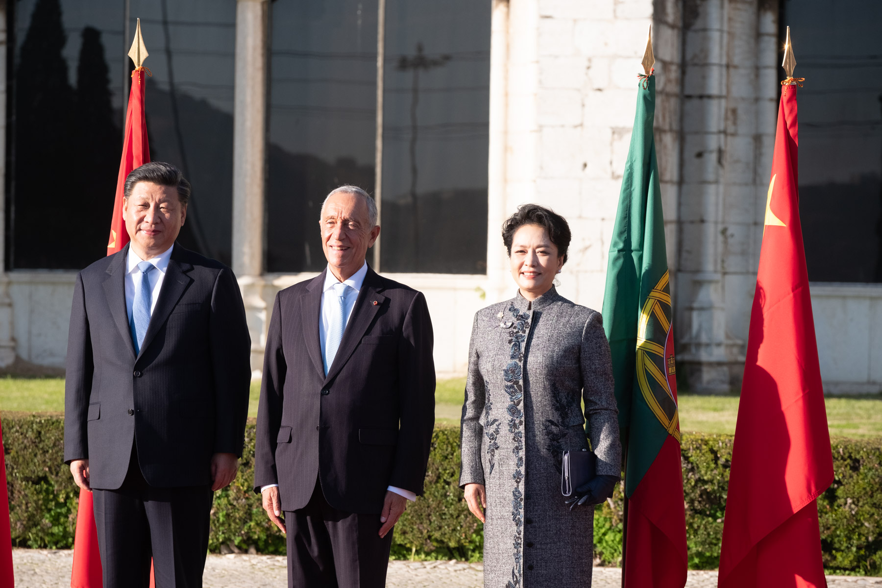 O Presidente da República recebeu, na Praça do Império em Lisboa, o Presidente da República Popular da China, Xi Jinping, e Senhora Peng Liyuan, com uma cerimónia oficial de boas-vindas que deu início a Visita de Estado a Portugal do Chefe de Estado chinês.