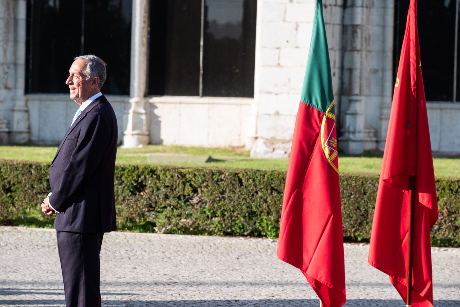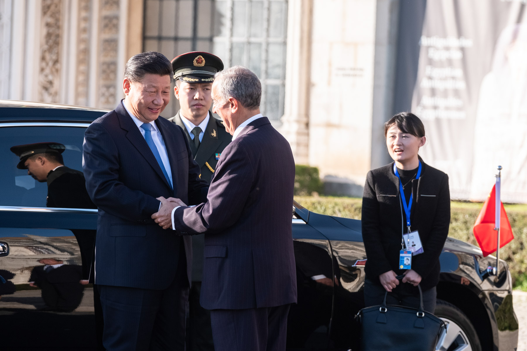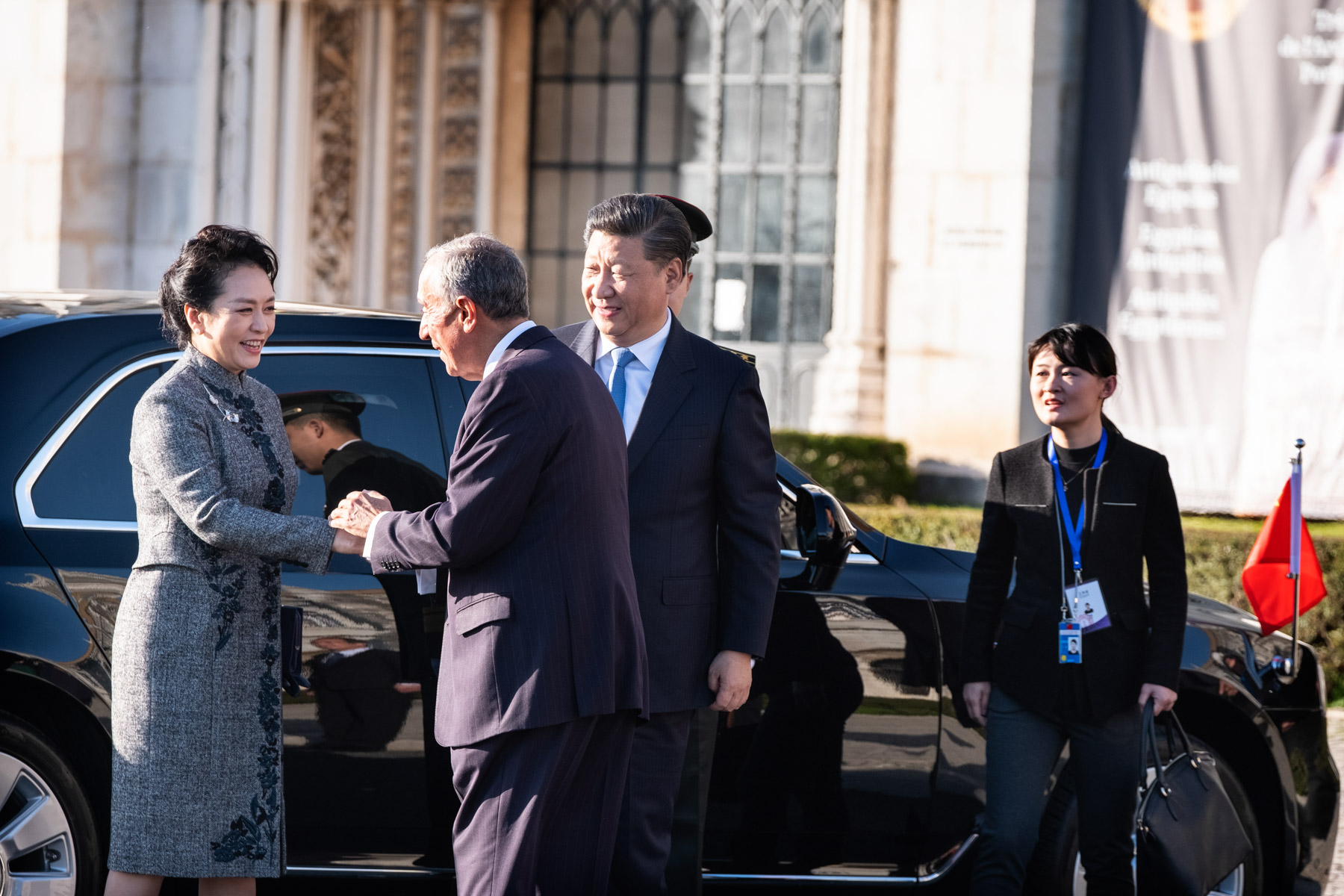 O Presidente da República recebeu, na Praça do Império em Lisboa, o Presidente da República Popular da China, Xi Jinping, e Senhora Peng Liyuan, com uma cerimónia oficial de boas-vindas que deu início a Visita de Estado a Portugal do Chefe de Estado chinês.