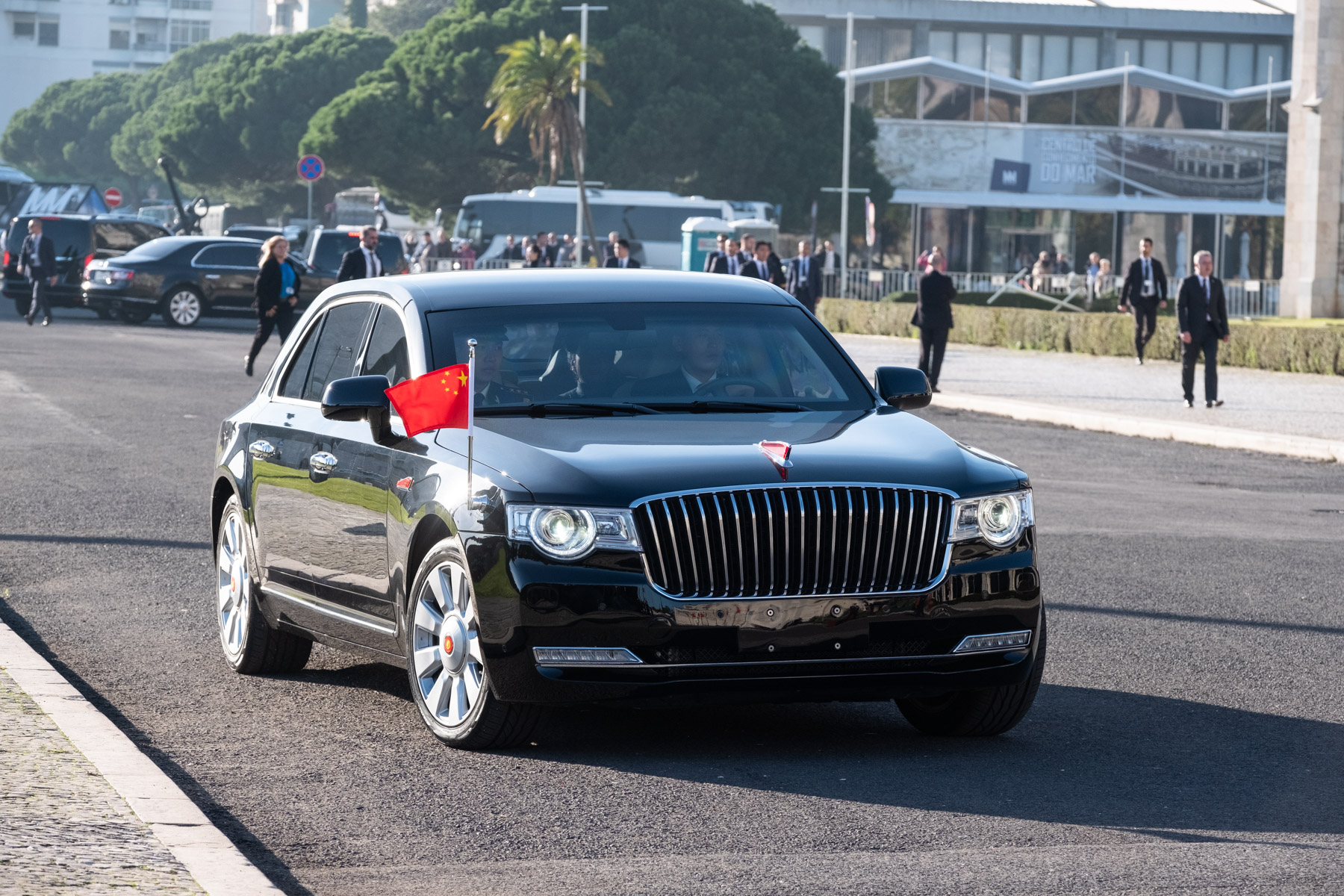 Deslocaram-se depois para o Palácio de Belém com escolta de honra por regimento a cavalo da GNR, tendo sido recebidos pelo Presidente Marcelo Rebelo de Sousa, onde após a fotografia oficial, o Presidente chinês assinou o livro de honra.