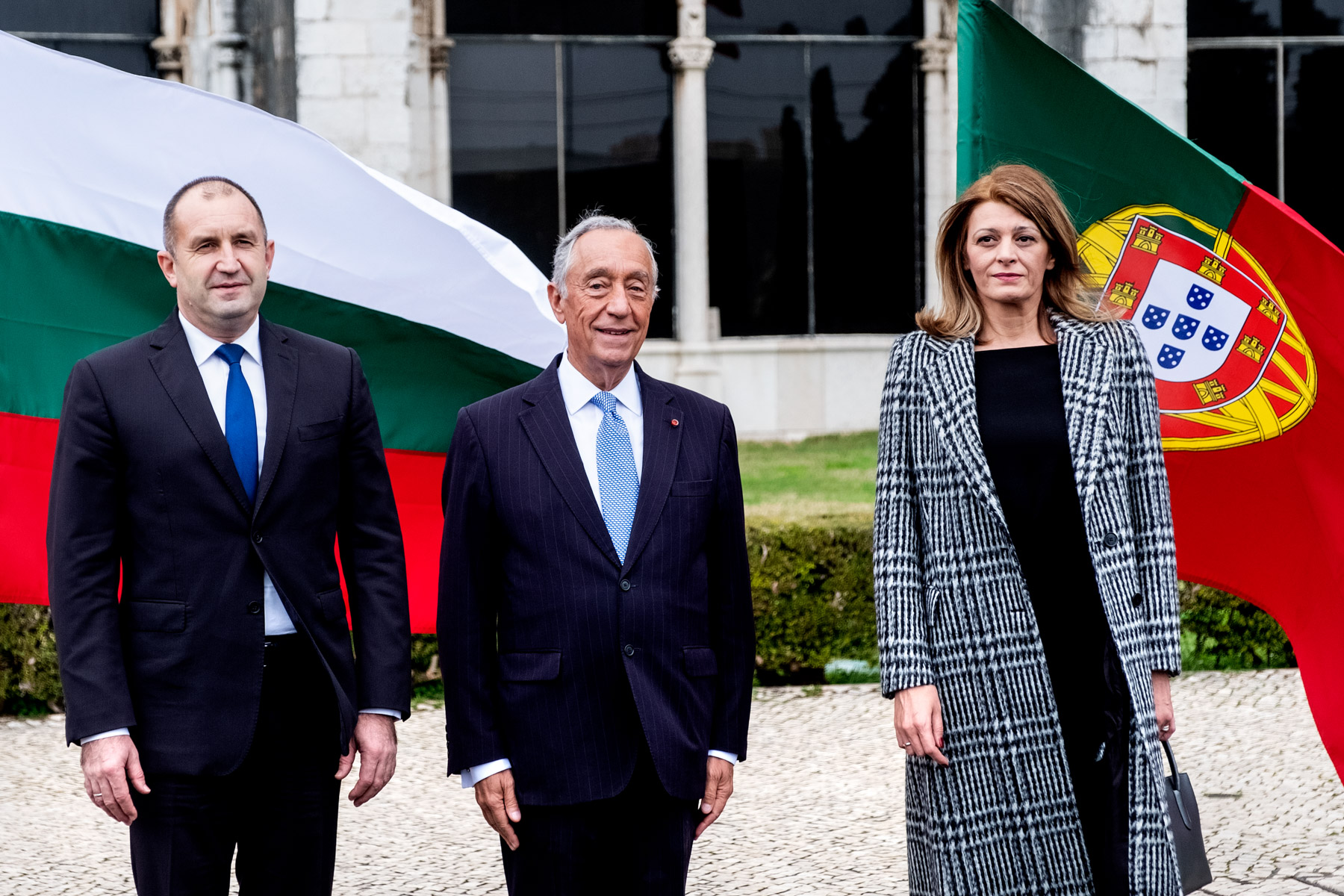 O Presidente da República da Bulgária, Rumen Radev, e Senhora Desislava Radeva, foram recebidos na Praça do Império - Mosteiro dos Jerónimos, pelo Presidente Marcelo Rebelo de Sousa, numa cerimónia oficial de boas-vindas, onde foram prestadas Honras Militares, com a execução dos Hinos Nacionais dos dois países e salva de 21 tiros, a que se seguiu revista e desfile da Guarda de Honra.