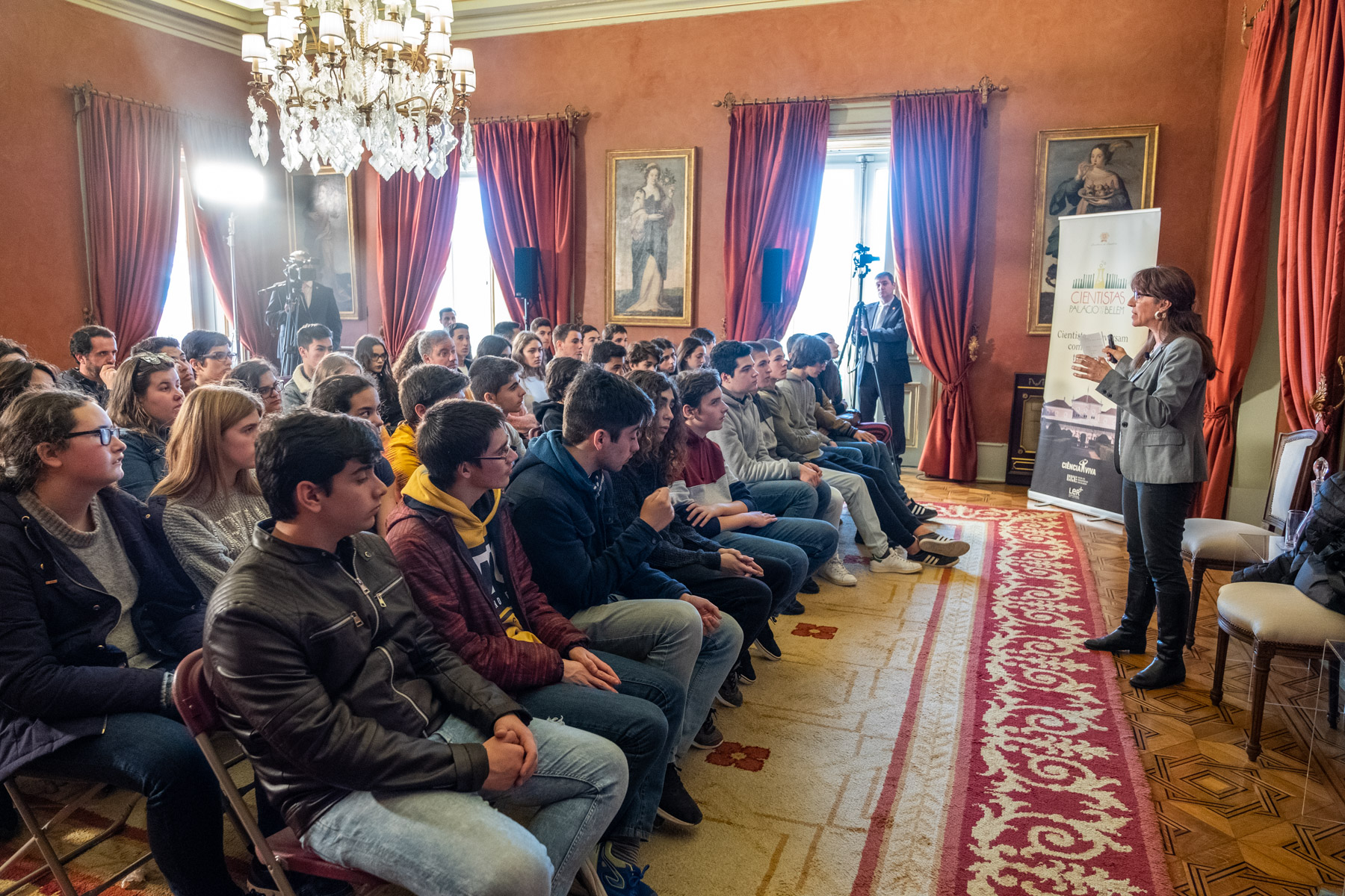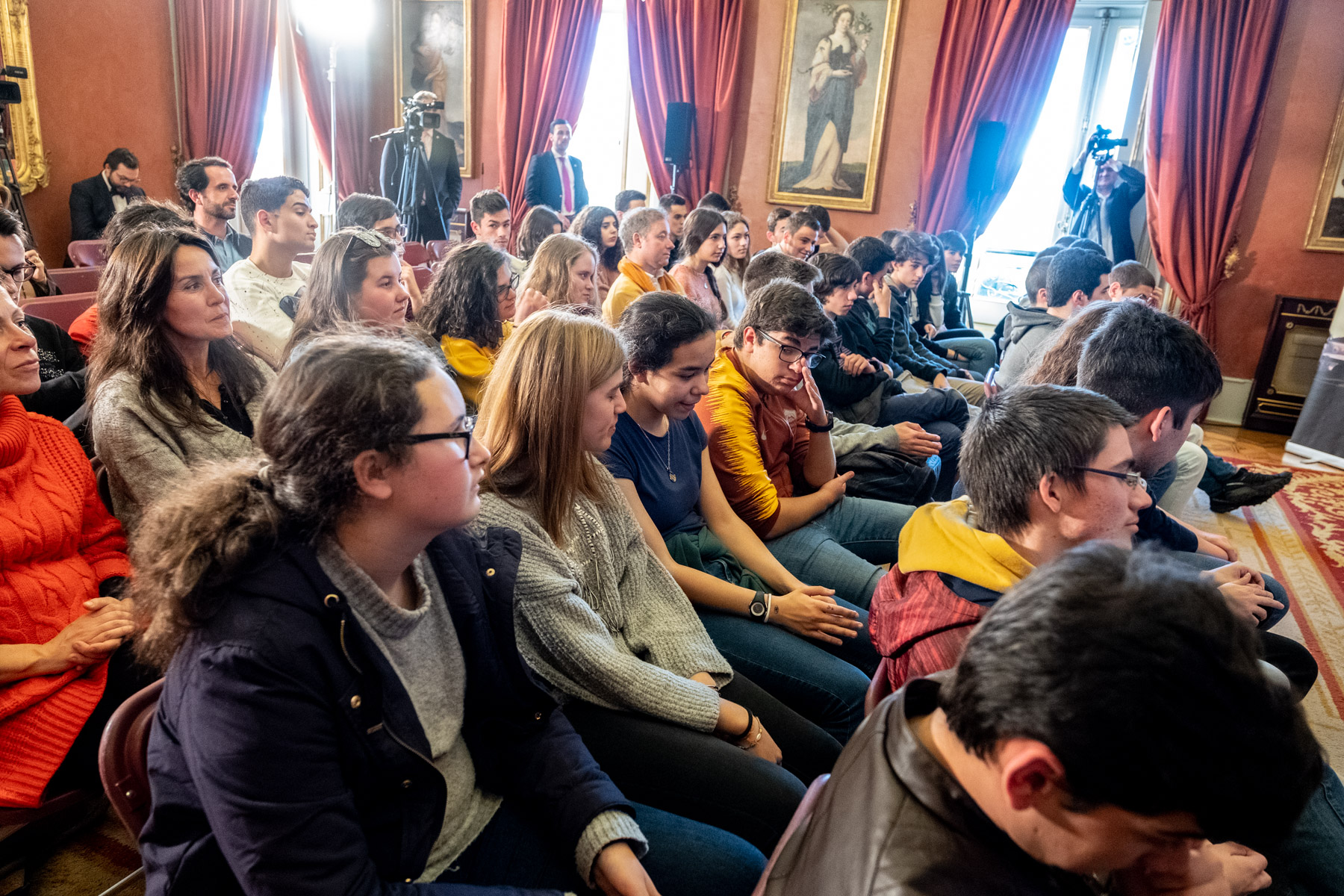 Estiveram presentes, nesta sessão, alunos do 11.º ano do Instituto Multimédia - Escola Profissional no Porto e alunos do 11º ano da Escola Básica e Secundária Ibn Mucana em Alcabideche, Cascais.