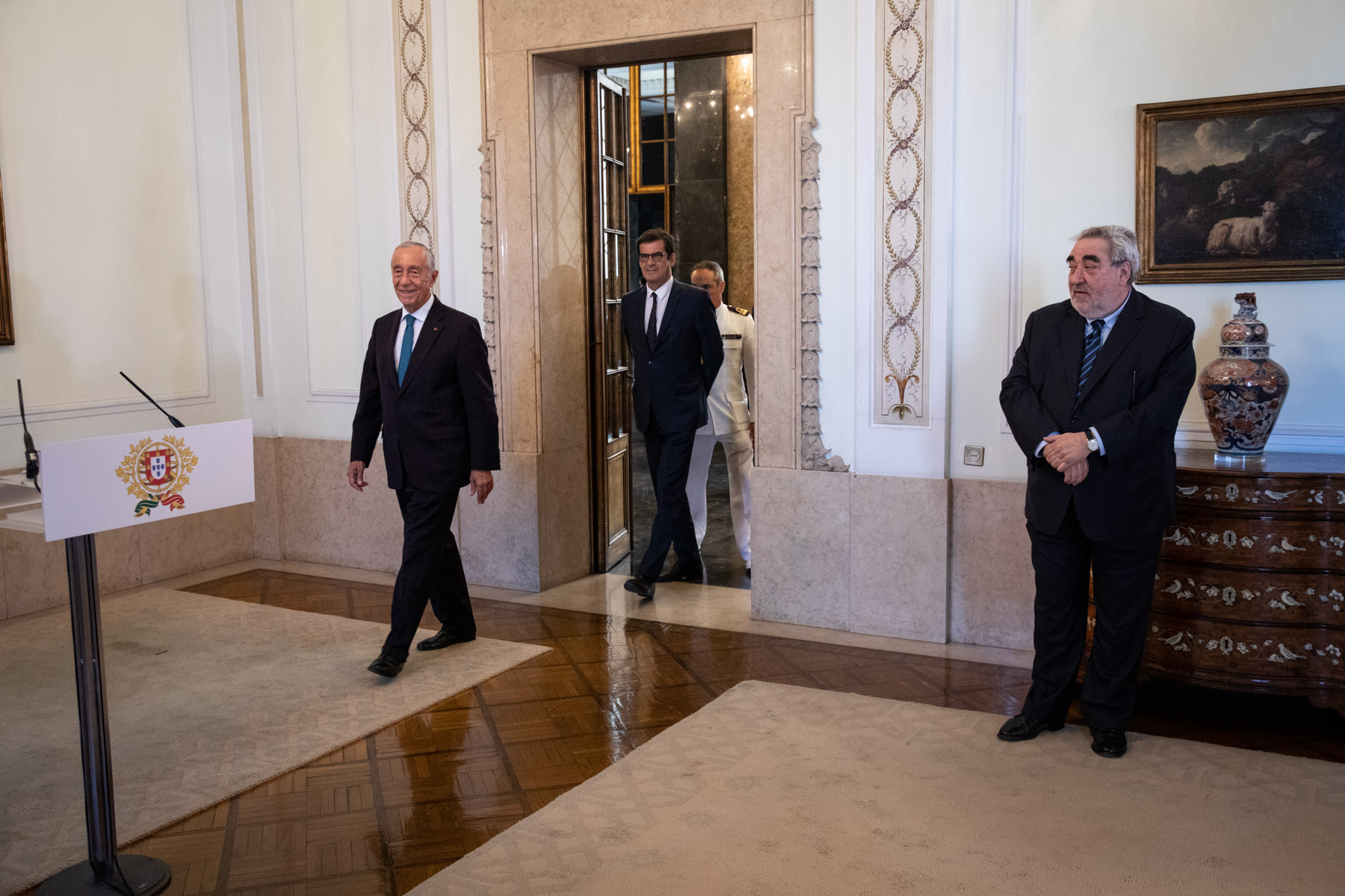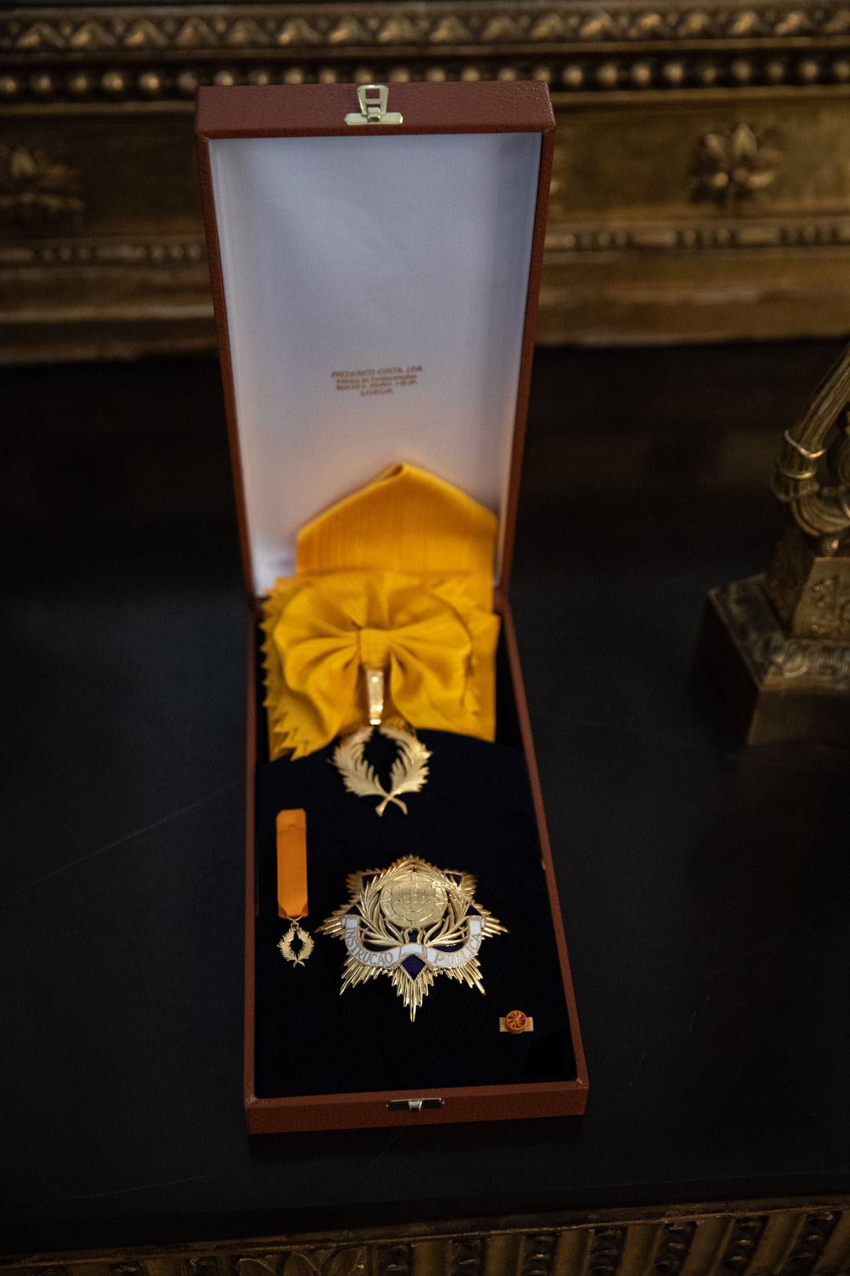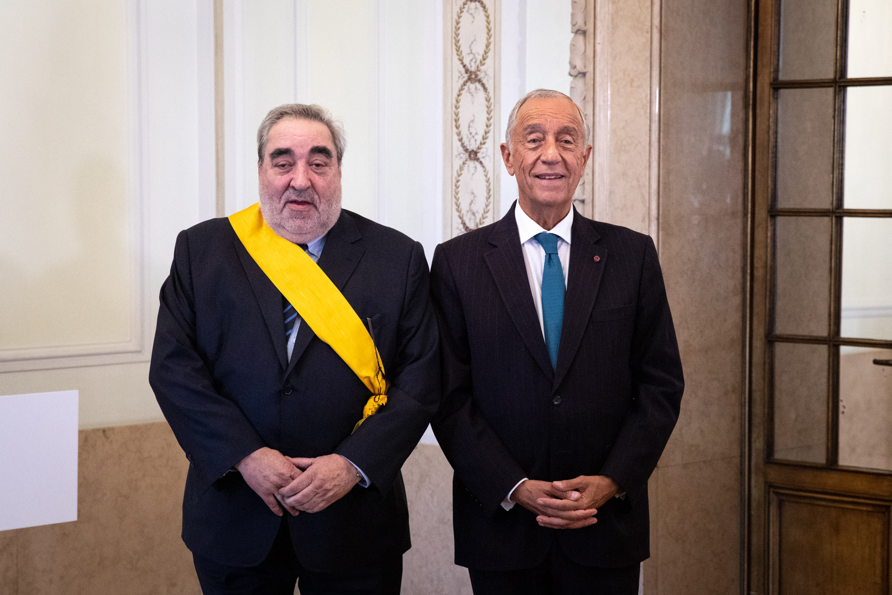 O Presidente Marcelo Rebelo de Sousa condecorou o arquiteto Eduardo Souto de Moura com a Grã-Cruz da Ordem da Instrução Pública, numa cerimónia realizada na sala D. Maria na Câmara Municipal do Porto.