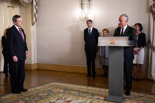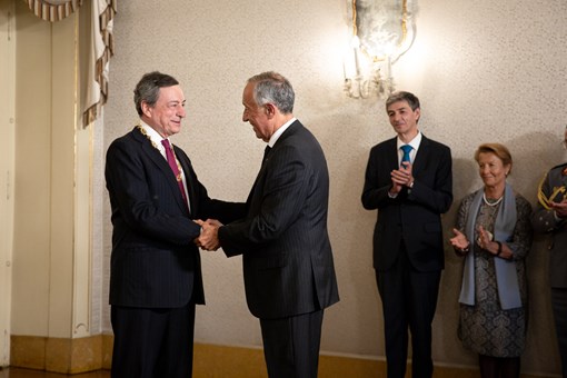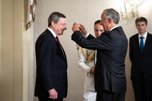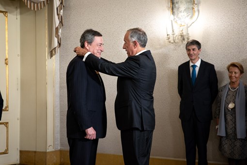 O Presidente Marcelo Rebelo de Sousa condecorou, em cerimónia realizada no Palácio de Belém, o Presidente do Banco Central Europeu, Mario Draghi, com o Grande-Colar da Ordem do Infante D. Henrique.