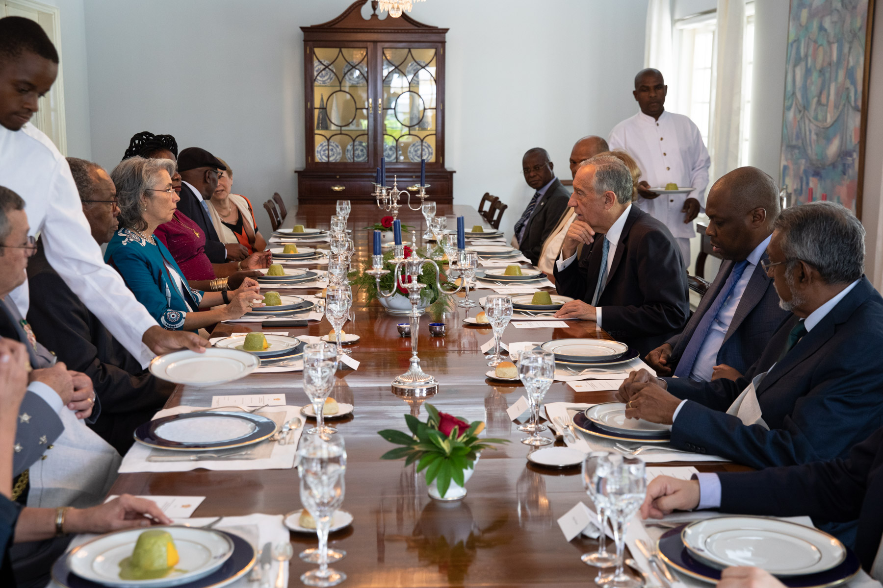 Na residência oficial da Embaixadora de Portugal em Maputo, o Presidente da República promoveu um almoço com cerca de dezena e meia de personalidades da vida política e jurídica local.
