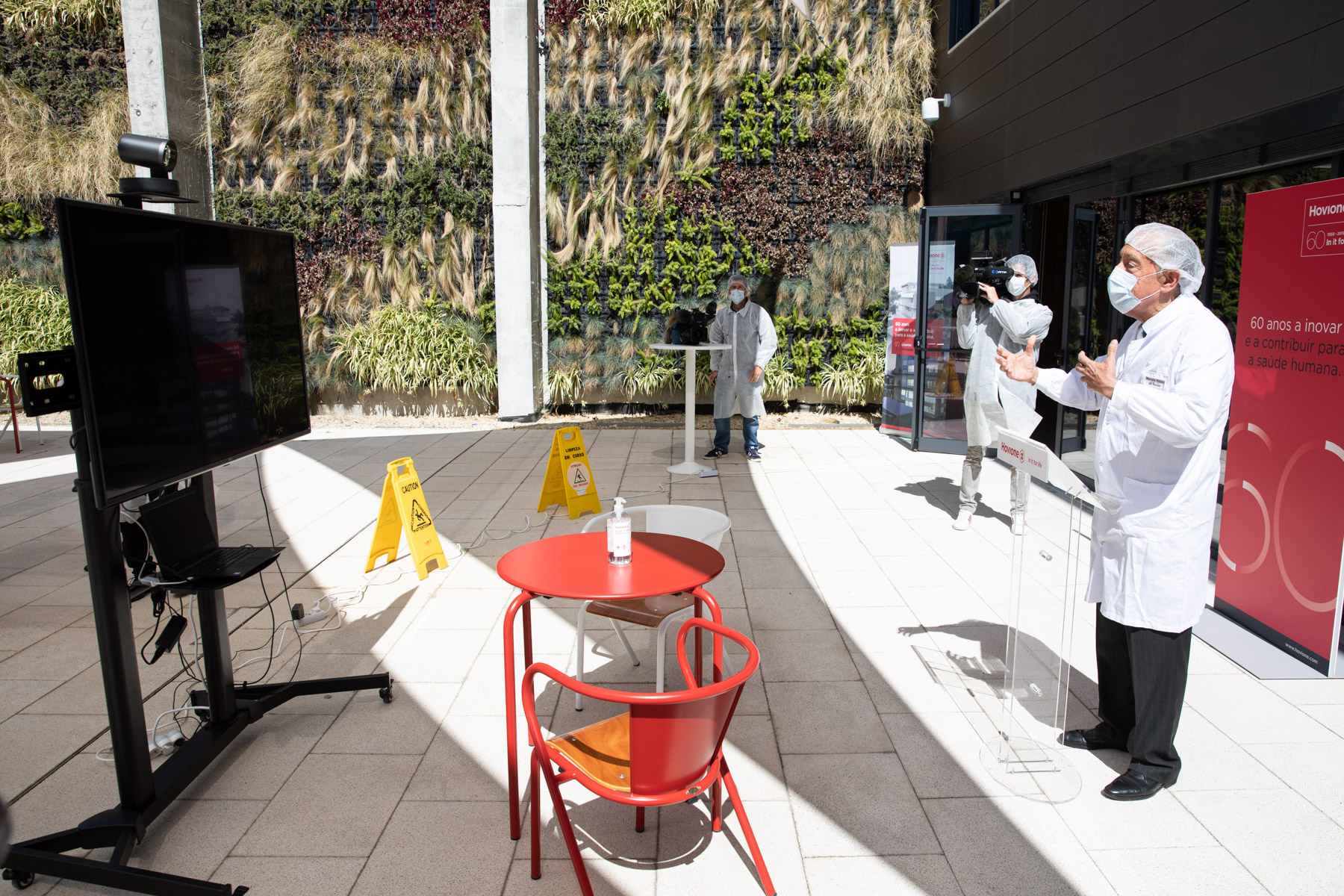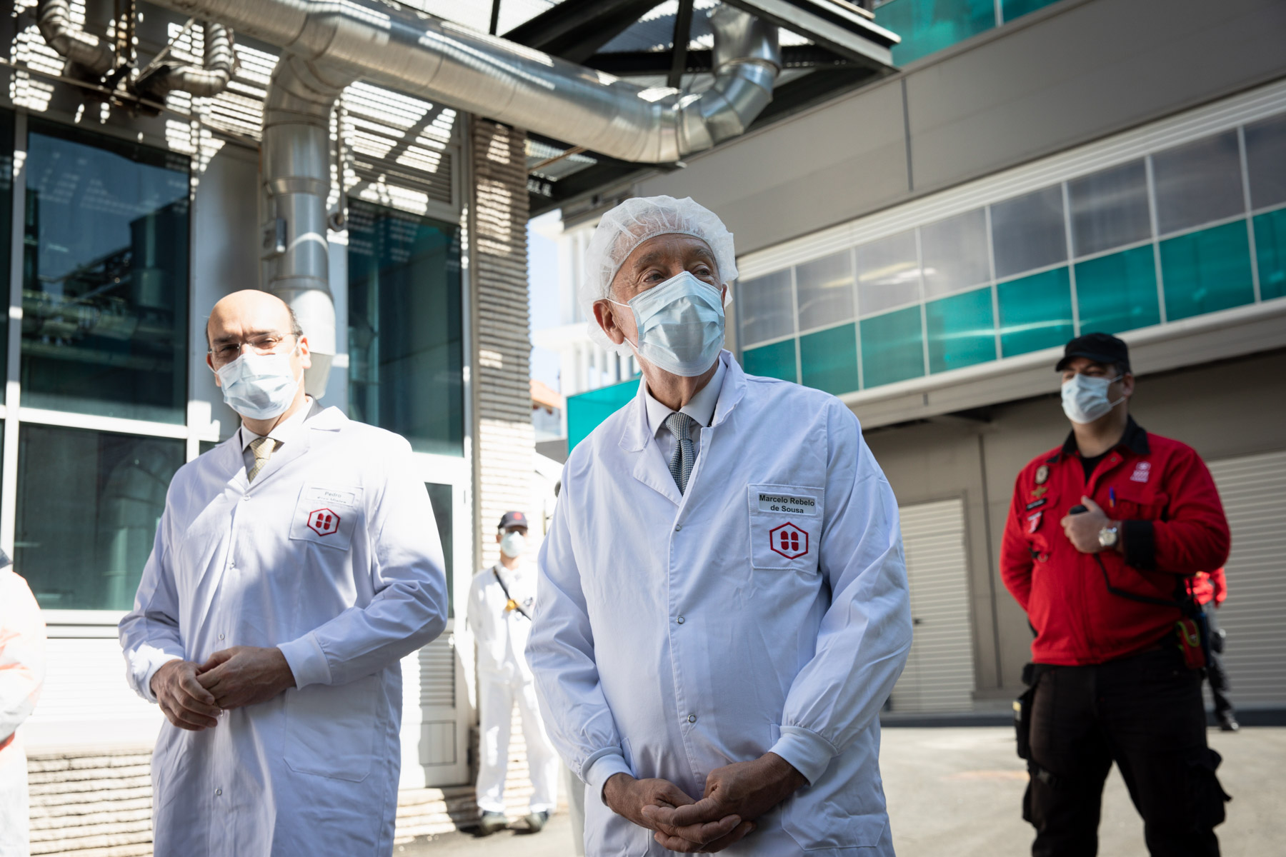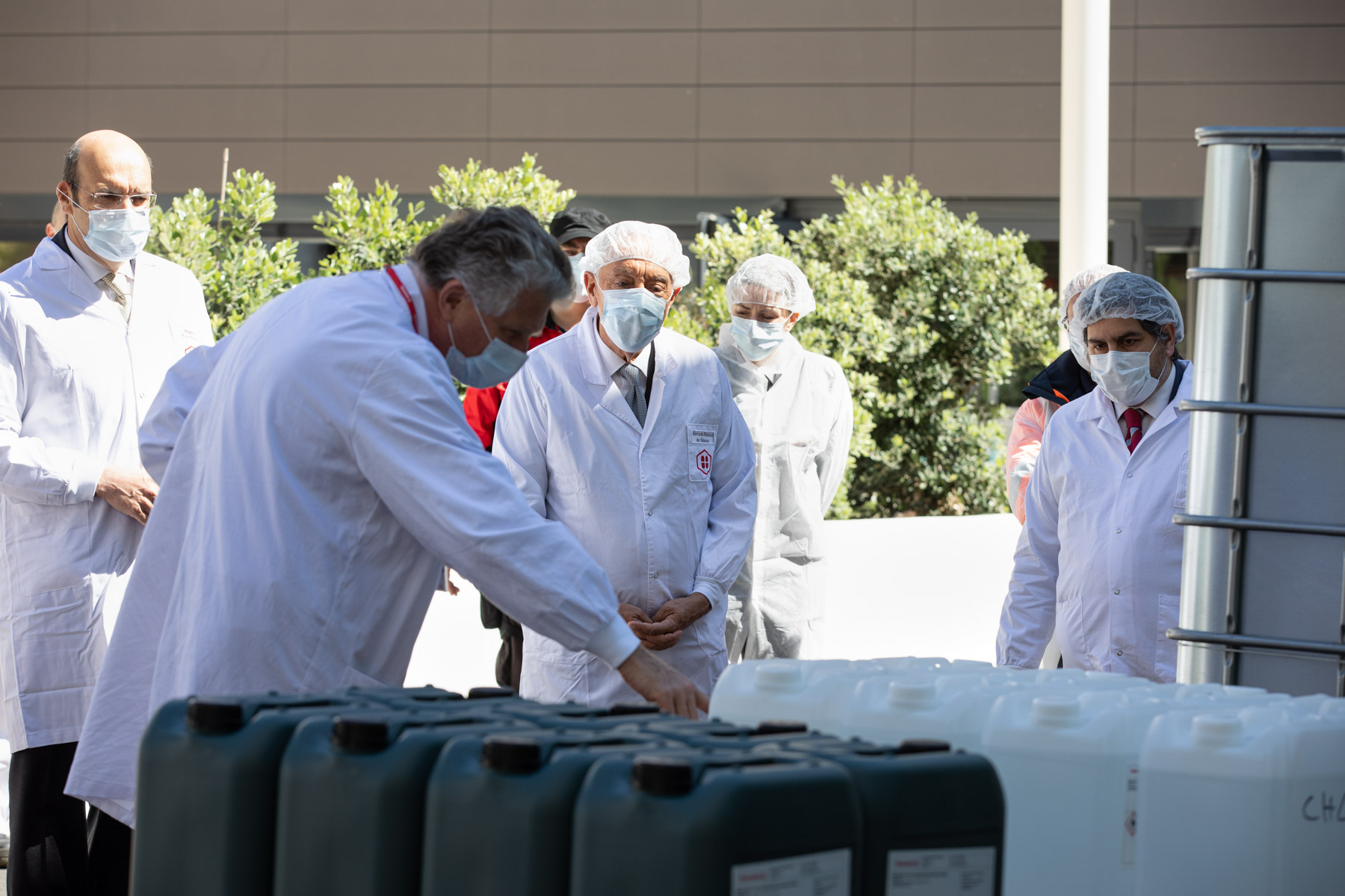 Durante a visita, o Chefe de Estado, acompanhado pelo Ministro de Estado e da Economia, Pedro Siza Vieira, e pelo Presidente da Câmara Municipal de Loures, Bernardino Soares, contactou, por videoconferência, com os trabalhadores das diversas áreas desta farmacêutica, produtora de medicamentos e gel desinfetante, que se encontra em laboração contínua, enaltecendo e agradecendo o seu esforço, assim como o de todos os portugueses que também se encontram a trabalhar ao sábado e ao domingo.