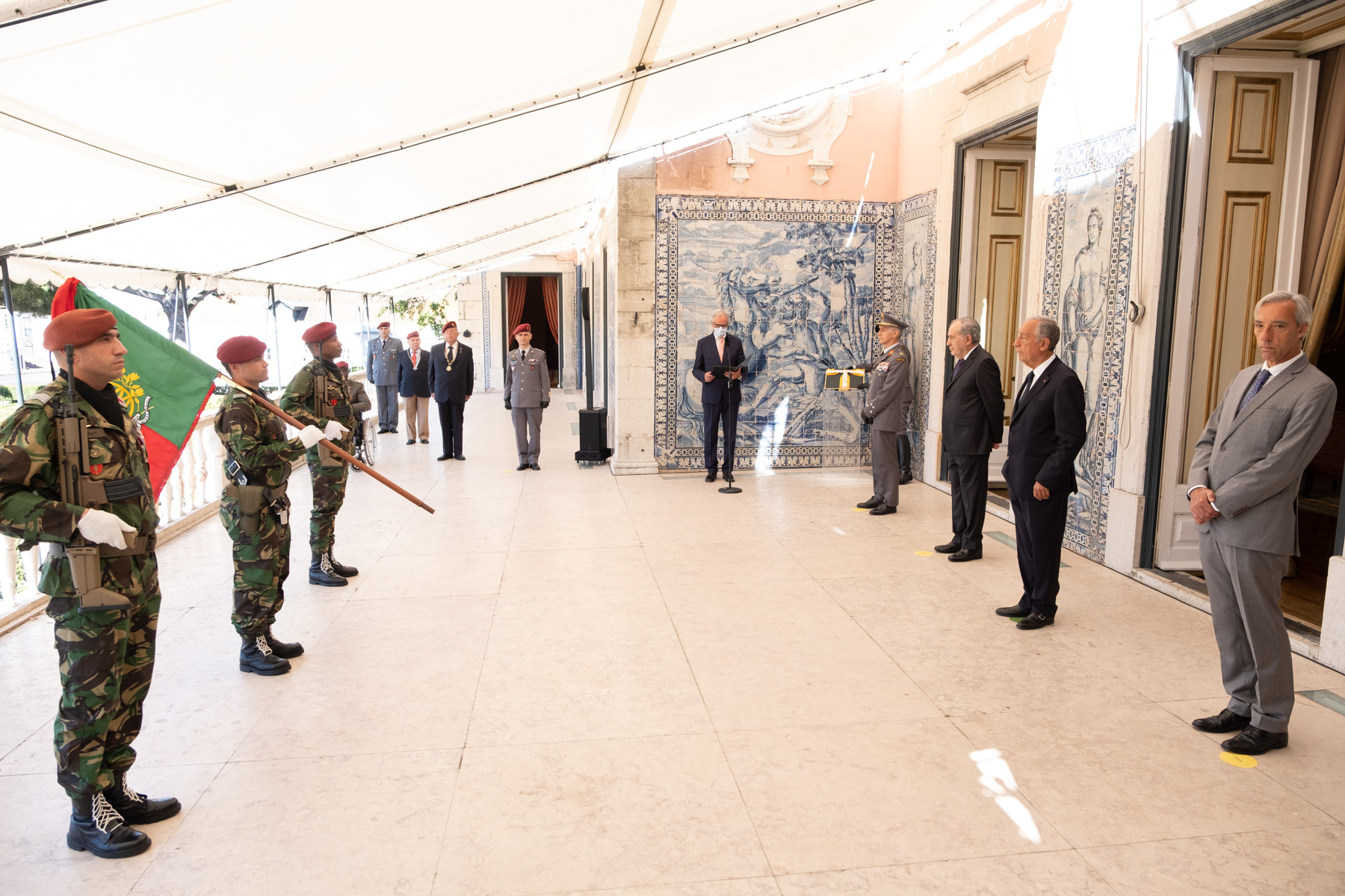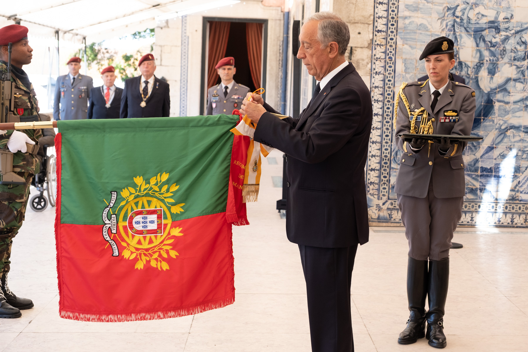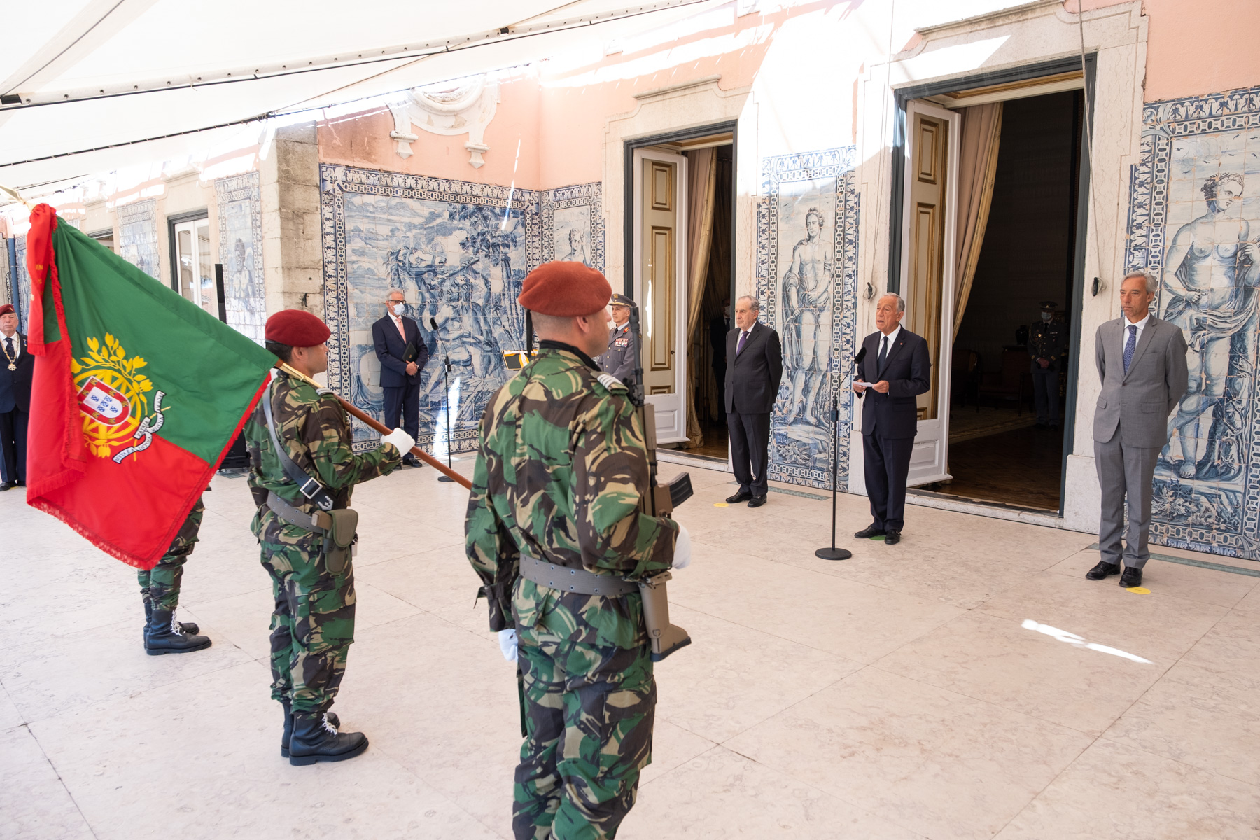 Na presença do Antigo Presidente da República, General António Ramalho Eanes, do Ministro da Defesa Nacional, João Gomes Cravinho, do Chefe do Estado-Maior do Exército, General José Nunes da Fonseca, de três agraciados com a Ordem Militar da Torre e Espada, do Valor, Lealdade e Mérito, General João de Almeida Bruno, Coronel Raúl Socorro Folques, e Tenente-Coronel Manuel Isaías Pires, do Presidente da Câmara Municipal de Sintra, Basílio Horta, do Comandante do Regimento de Comandos, Coronel Eduardo Vieira Pombo, e do Sargento e do Praça do Regimento de Comandos, respetivamente, Sargento-Mor Manuel António Rodrigues e Soldado Aliu Camará, o Presidente Marcelo Rebelo de Sousa, após usar da palavra, impôs as insígnias da Ordem da Liberdade no Estandarte Nacional do Regimento de Comandos.