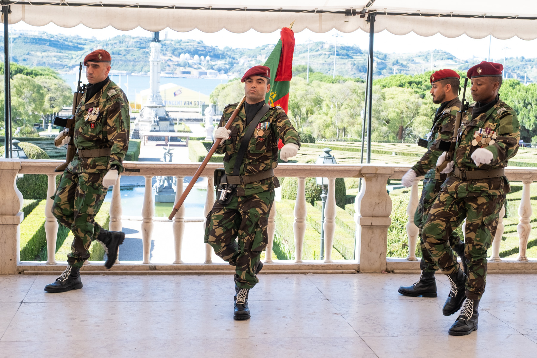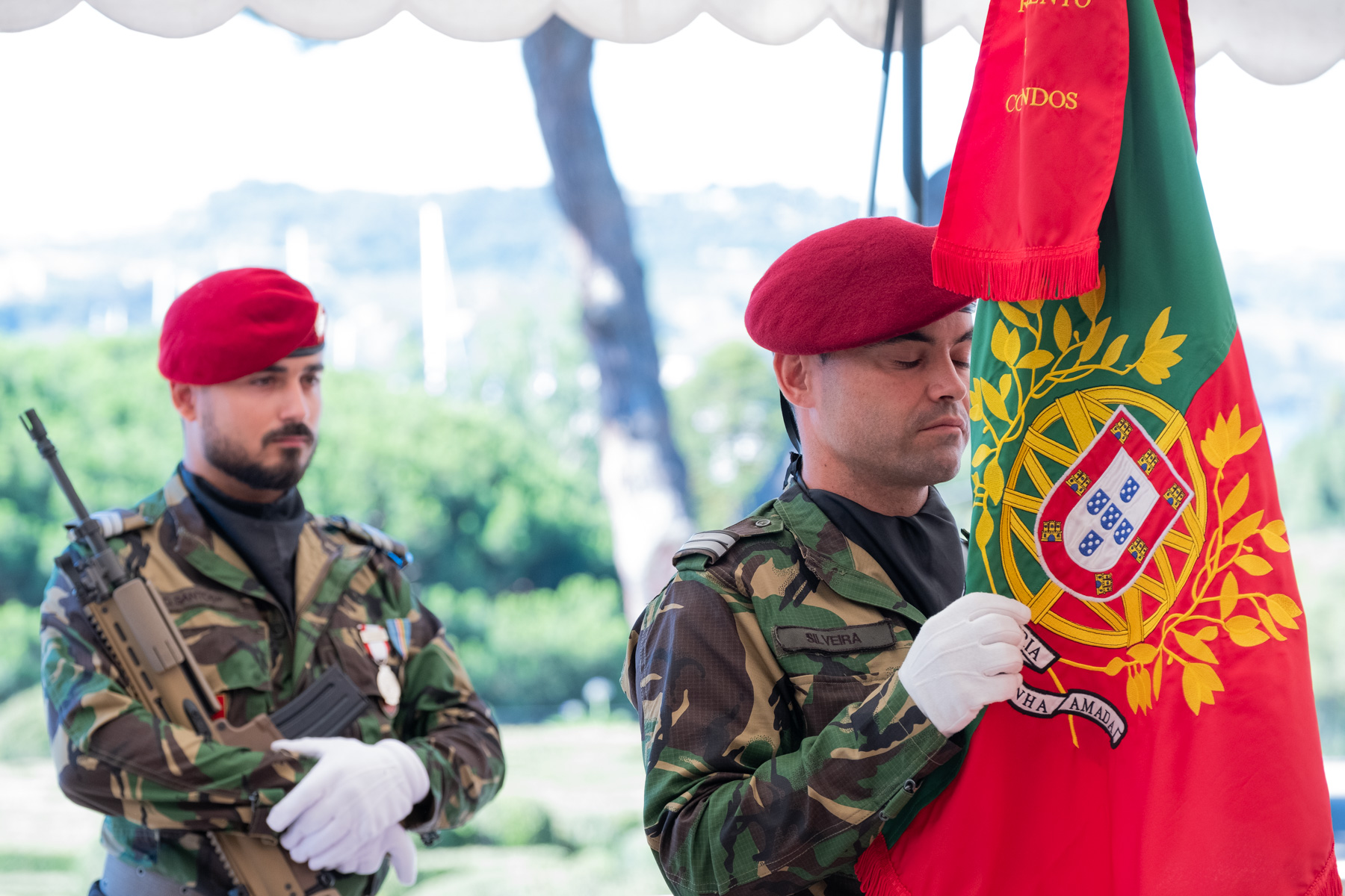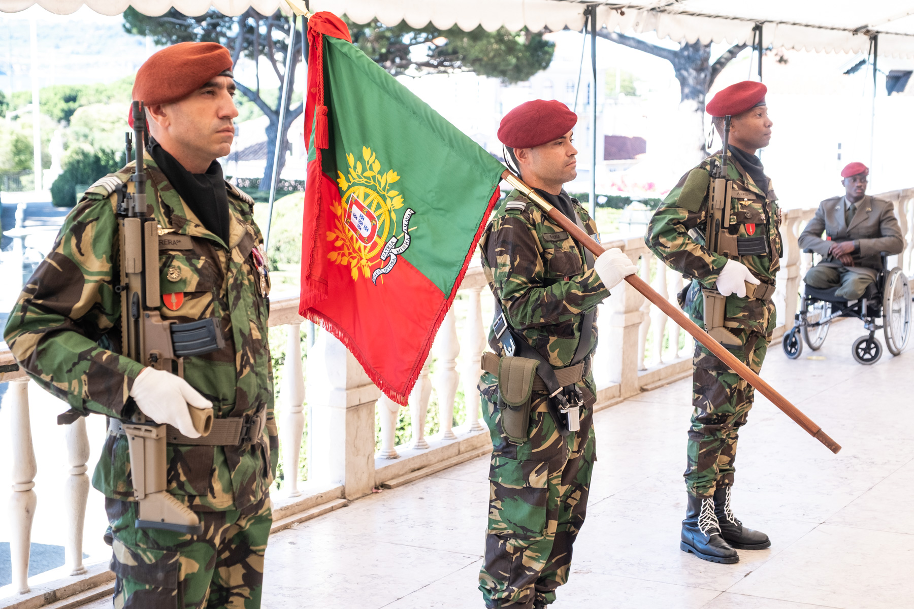 Na presença do Antigo Presidente da República, General António Ramalho Eanes, do Ministro da Defesa Nacional, João Gomes Cravinho, do Chefe do Estado-Maior do Exército, General José Nunes da Fonseca, de três agraciados com a Ordem Militar da Torre e Espada, do Valor, Lealdade e Mérito, General João de Almeida Bruno, Coronel Raúl Socorro Folques, e Tenente-Coronel Manuel Isaías Pires, do Presidente da Câmara Municipal de Sintra, Basílio Horta, do Comandante do Regimento de Comandos, Coronel Eduardo Vieira Pombo, e do Sargento e do Praça do Regimento de Comandos, respetivamente, Sargento-Mor Manuel António Rodrigues e Soldado Aliu Camará, o Presidente Marcelo Rebelo de Sousa, após usar da palavra, impôs as insígnias da Ordem da Liberdade no Estandarte Nacional do Regimento de Comandos.
