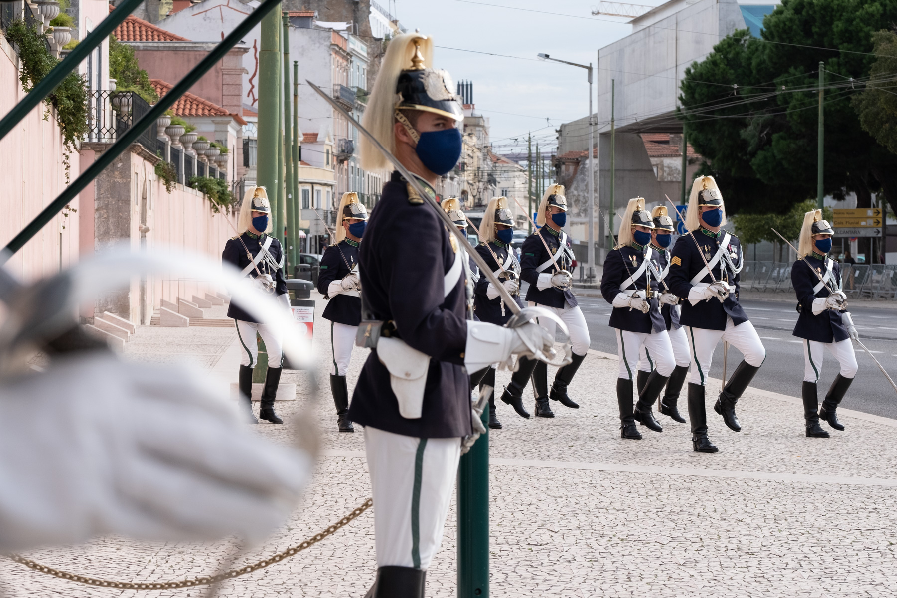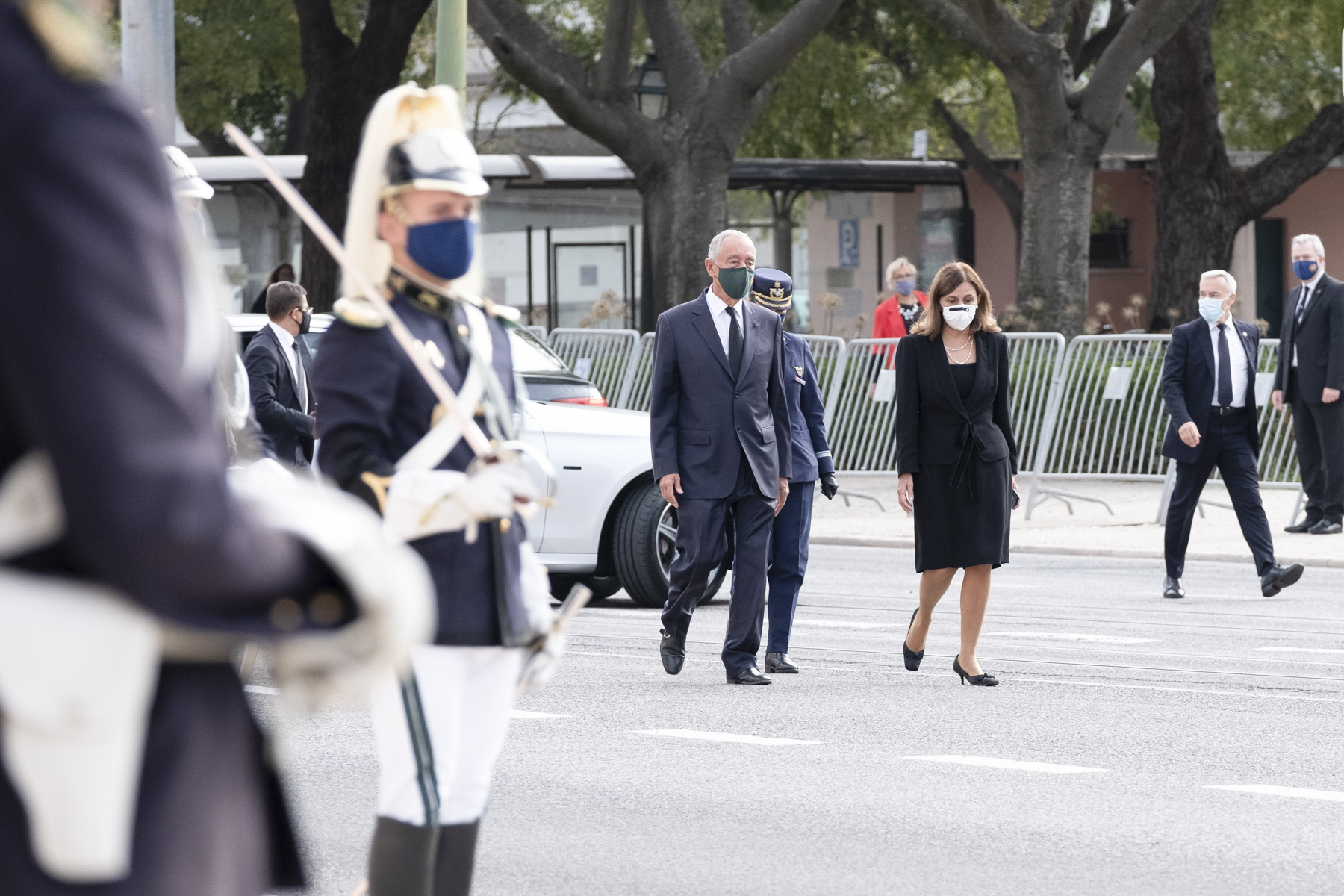 Na presença do Presidente da Assembleia da República, Eduardo Ferro Rodrigues, do Primeiro-Ministro, António Costa, do Presidente do Tribunal Constitucional, Manuel da Costa Andrade, do Presidente do Supremo Tribunal de Justiça, António Piçarra, e do Presidente do Tribunal de Contas, José Tavares, uma Guarda de Honra, composta por militares do Esquadrão Presidencial e após autorização do Presidente Marcelo Rebelo de Sousa, deu início à cerimónia.