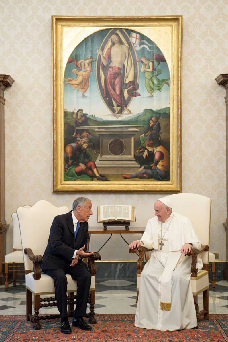 O Presidente da República encontrou-se longamente esta manhã com o Papa Francisco, tendo passado em revista vários temas de interesse bilateral e internacional, incluindo a Presidência Portuguesa do Conselho da União Europeia, tendo sido o primeiro Chefe de Estado a encontrar o Sumo Pontífice depois da visita deste ao Iraque.