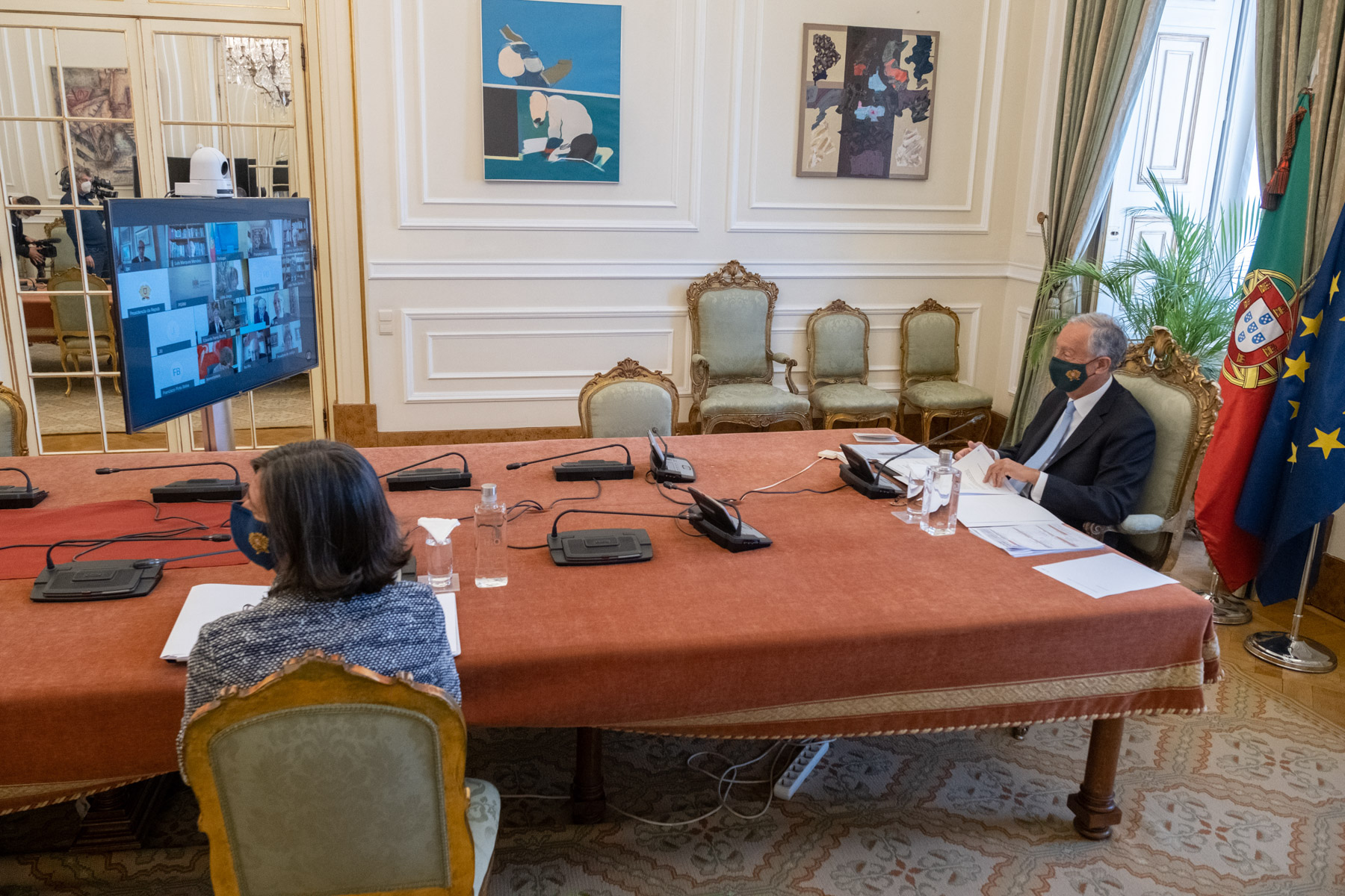 O Presidente da República presidiu, a partir do Palácio de Belém, à Reunião do Conselho de Estado que decorreu por videoconferência e na qual participou, como convidado, o Ministro da Defesa Nacional, João Gomes Cravinho.