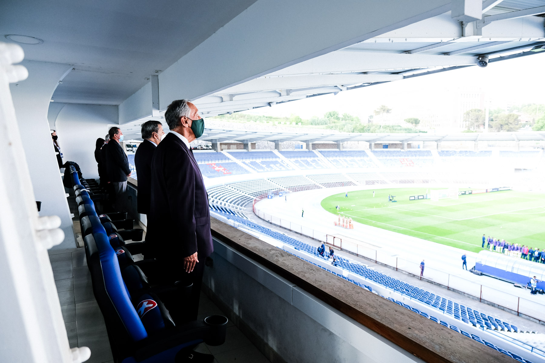 À chegada, o Presidente Marcelo Rebelo de Sousa foi recebido pelo Presidente da Federação Portuguesa de Futebol, Fernando Gomes, e pelo Presidente do Clube de Futebol “Os Belenenses”, Patrick Morais de Carvalho.