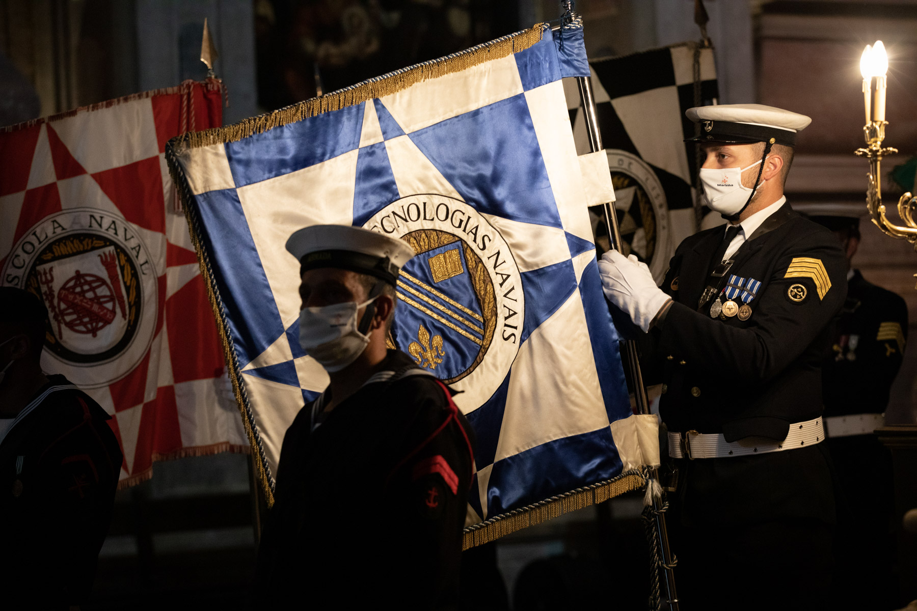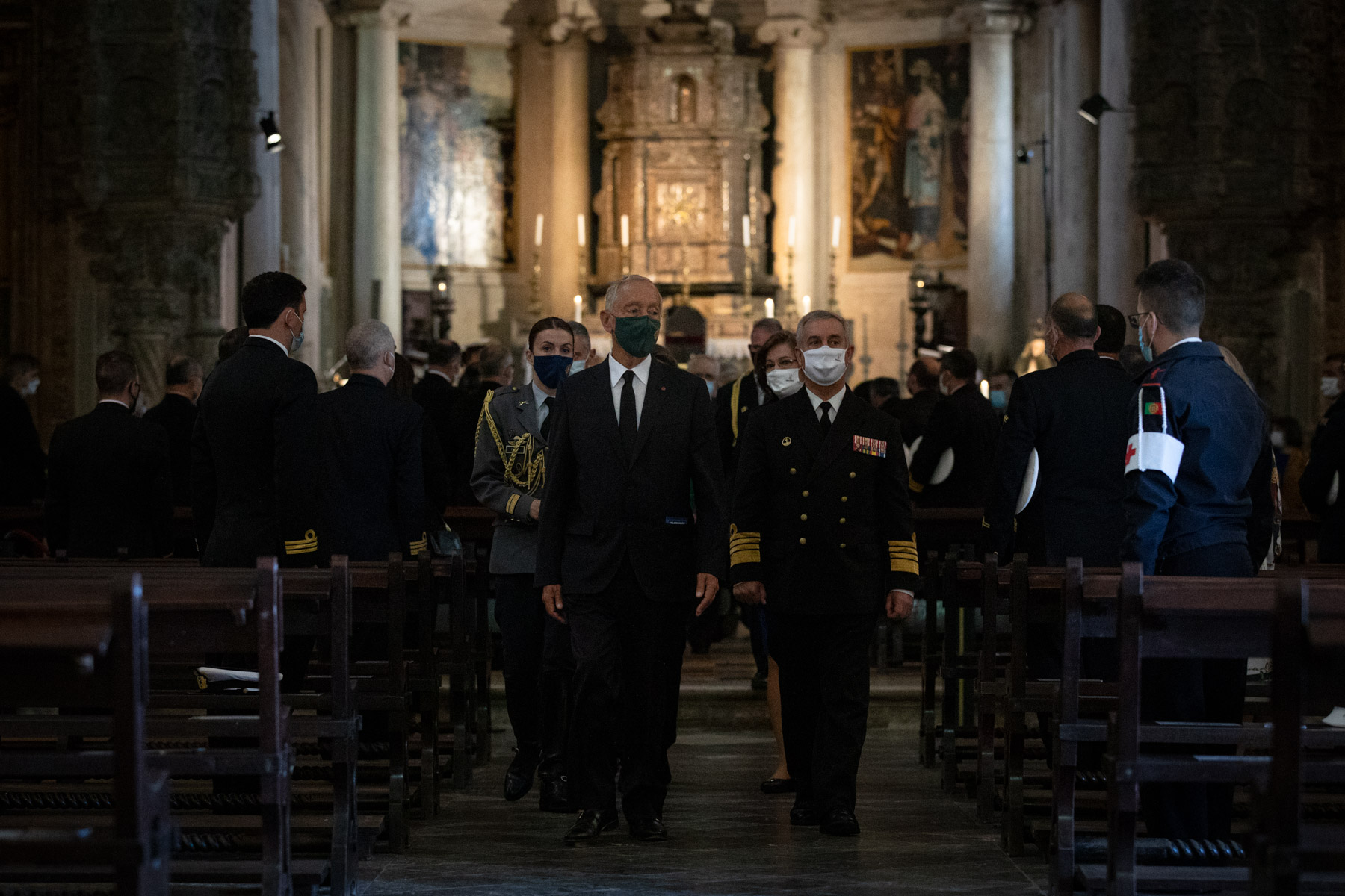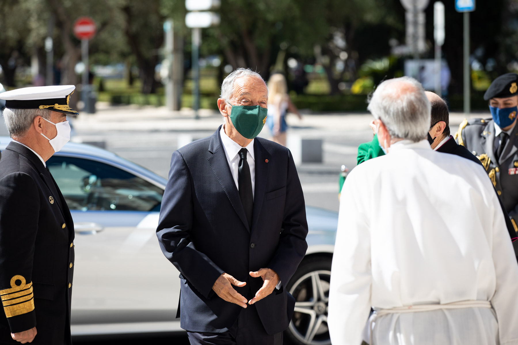 O Presidente Marcelo Rebelo de Sousa foi recebido, na Igreja de Santa Maria de Belém no Mosteiro dos Jerónimos em Lisboa, pela Secretária de Estado de Recursos Humanos e Antigos Combatentes, Catarina Sarmento e Castro, e pelo Chefe do Estado-Maior da Armada, Almirante António Mendes Calado.