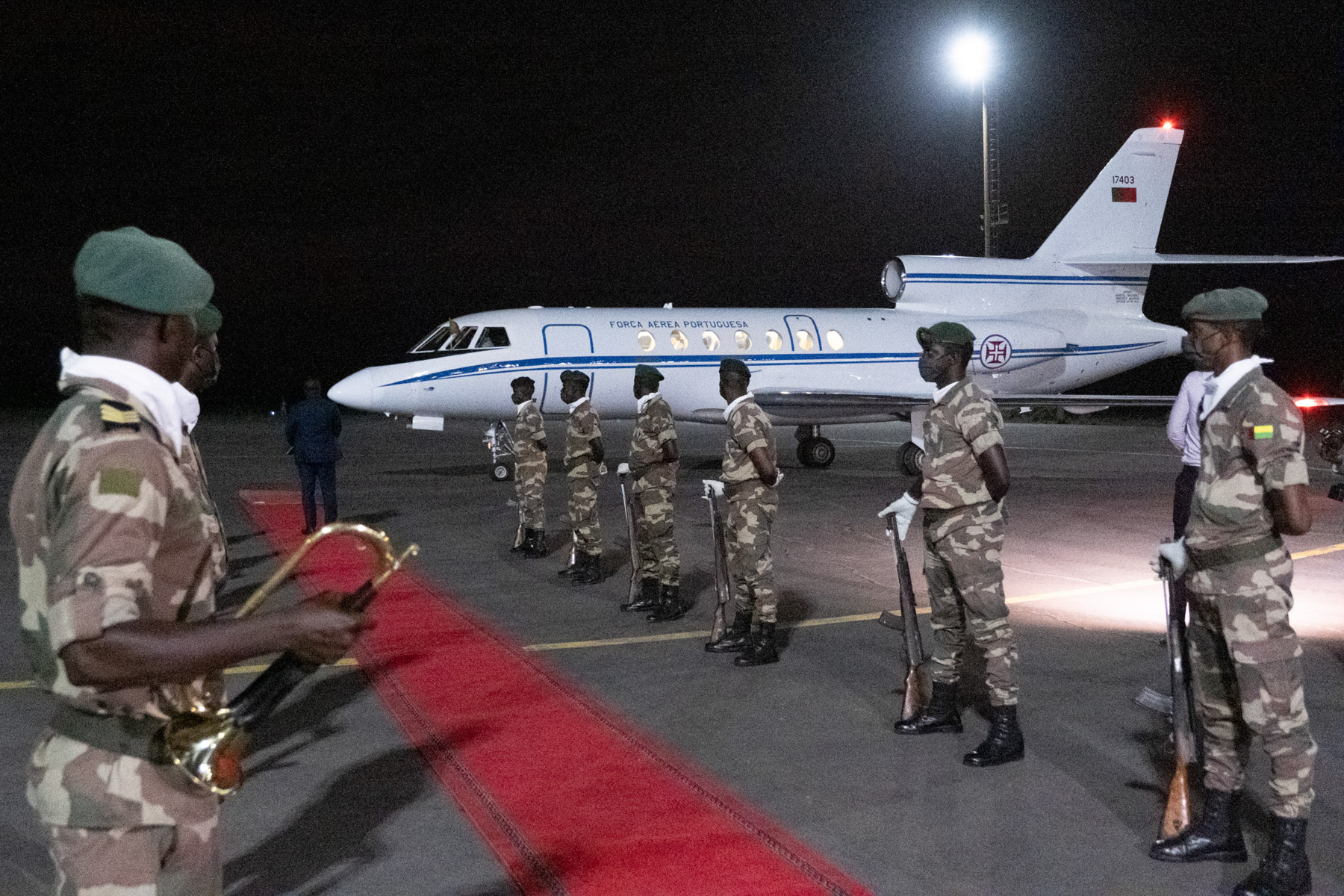 Na chegada, estiveram também presentes, o Embaixador de Portugal em Bissau, José Rui Velez Caroço, o Embaixador da Guiné-Bissau em Lisboa, Hélder Vaz Lopes, e os Embaixadores dos países da Comunidade dos Países de Língua Portuguesa (CPLP) e da União Europeia residentes em Bissau.