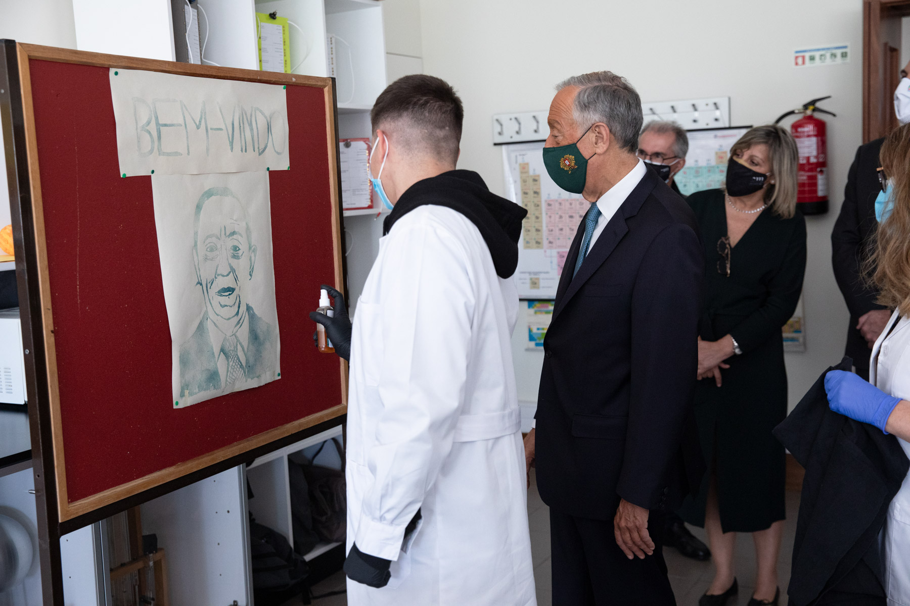 Após ser recebido pela Diretora e pelo Presidente do Conselho Geral do Agrupamento de Escolas Carolina Michaëlis, Isabel Ribeiro da Silva e Augusto Sousa respetivamente, e por um grupo de alunos e professores das outras três escolas do agrupamento, o Presidente Marcelo Rebelo de Sousa visitou as salas de físico-química e biologia, o salão nobre e biblioteca histórica, além de outras salas de aula do ensino básico e secundário.