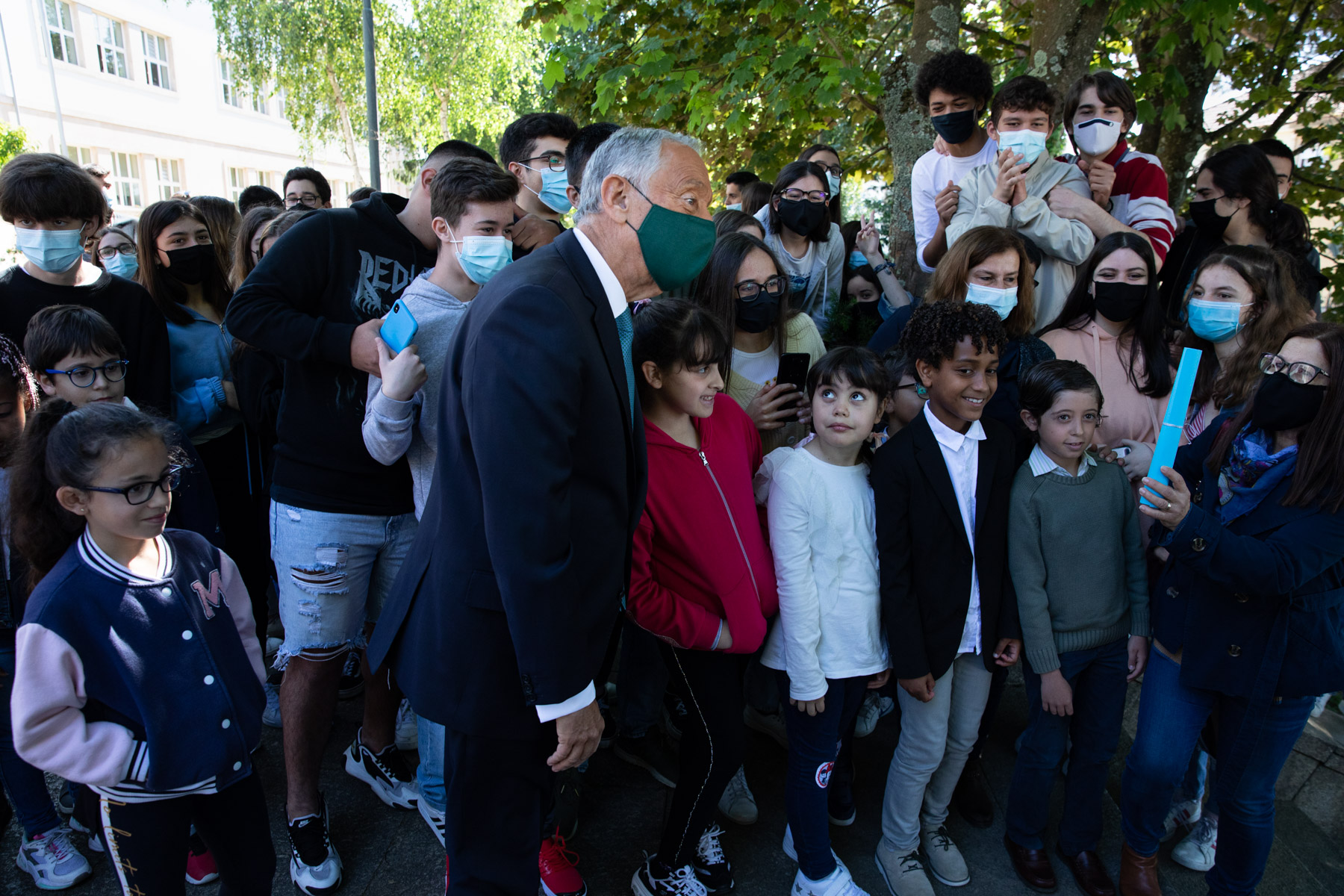 O Presidente da República visitou a Escola Secundária Carolina Michaelis, no Porto, onde assinalou o Dia Mundial da Língua Portuguesa numa aula-debate com alunos do ensino secundário.