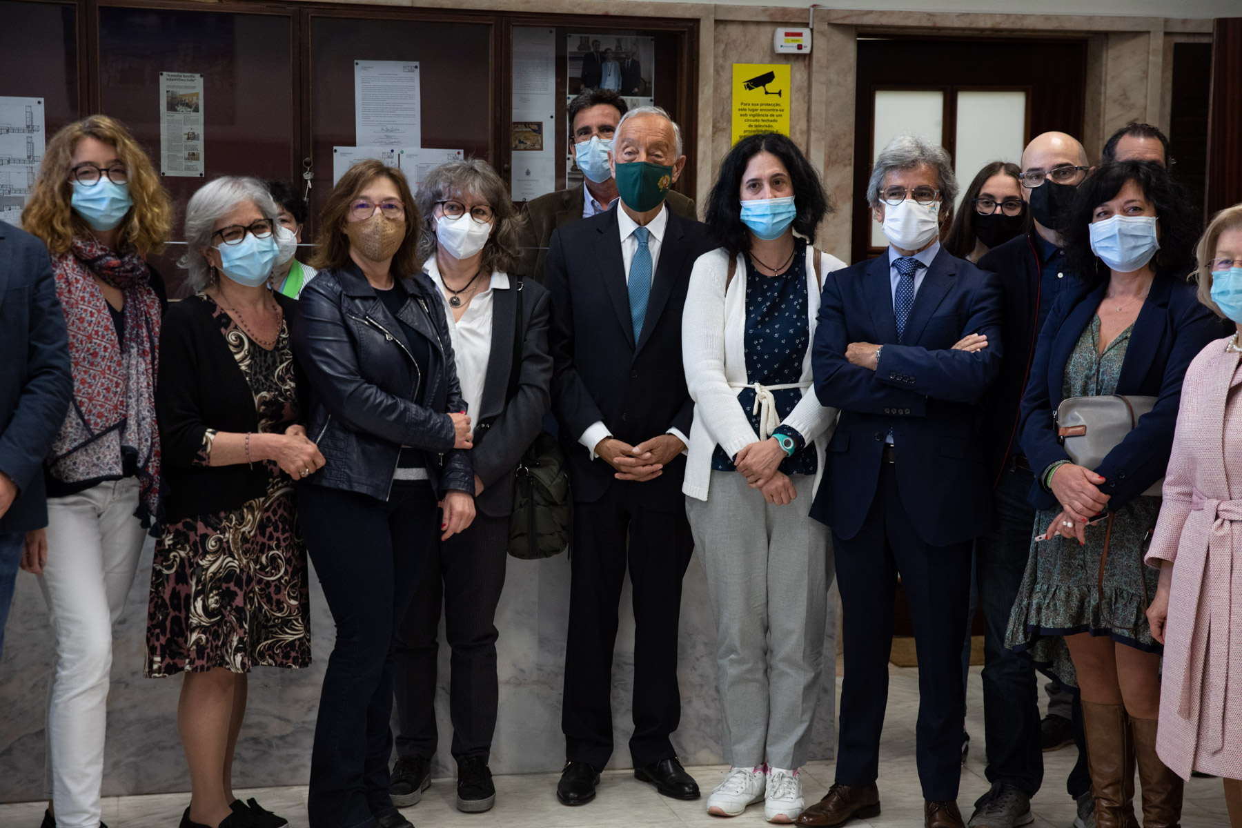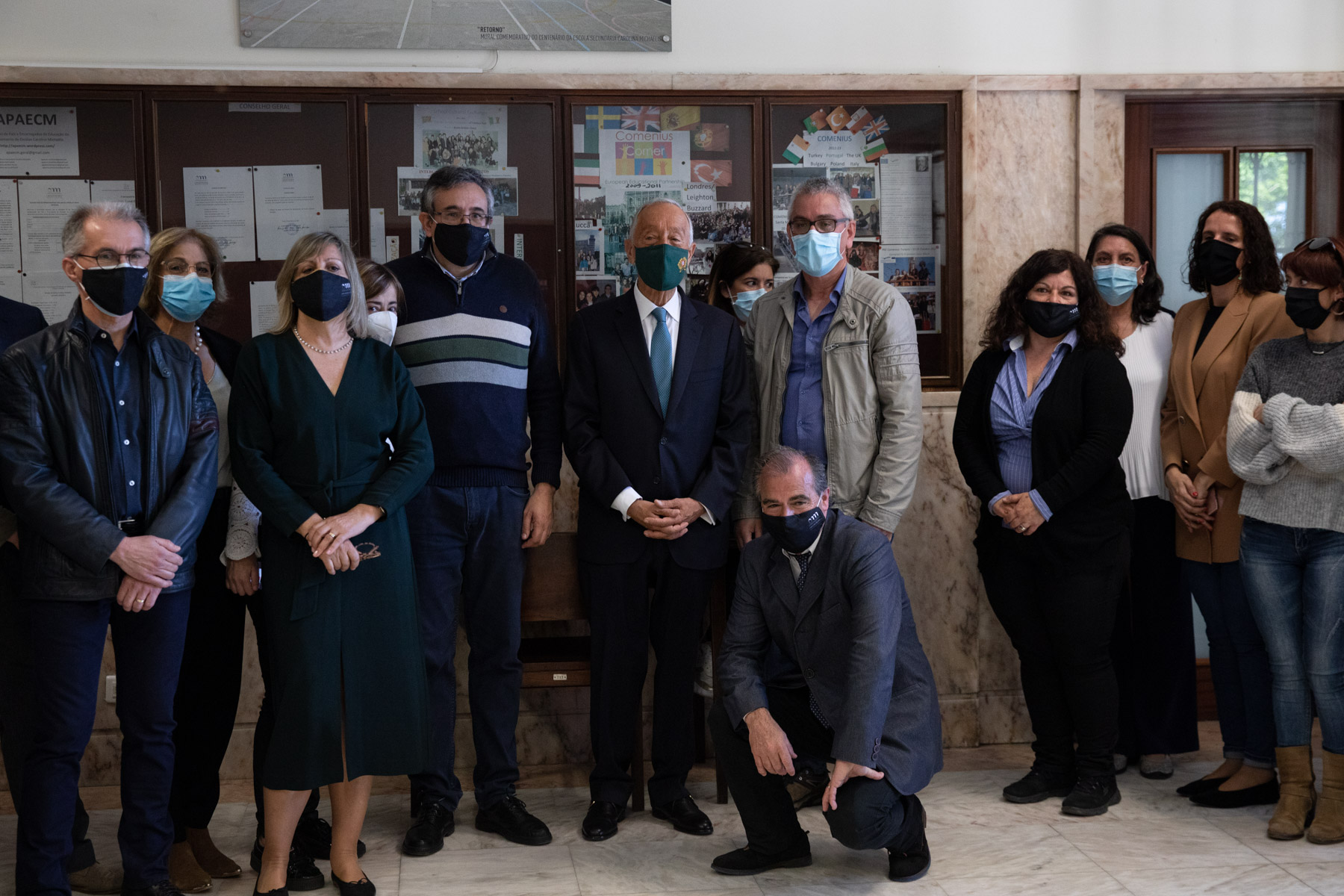 No auditório da escola, o Presidente da República descerrou uma placa de homenagem da comunidade escolar ao anterior Diretor da Escola, Prof. José Novais, que passou a dar o nome ao auditório.