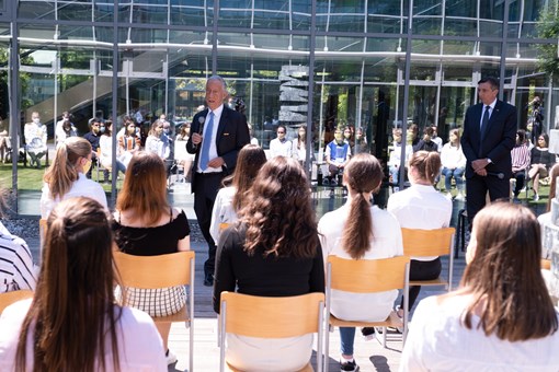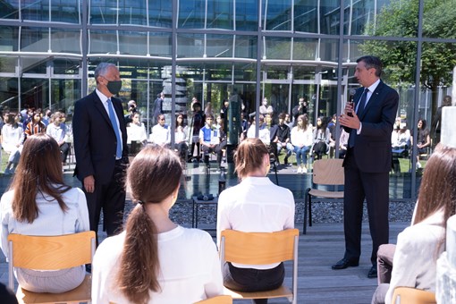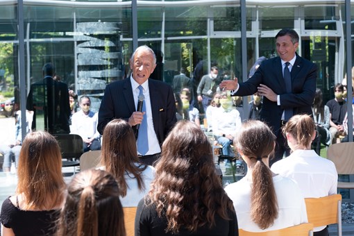 O Presidente Marcelo Rebelo de Sousa, em conjunto com o Presidente da República da Eslovénia, Borut Pahor, participou numa aula com alunos do liceu de Kranj com o tema “Como veem e como querem as crianças e os jovens o futuro da Europa, em termos de valores e prioridades práticas”.