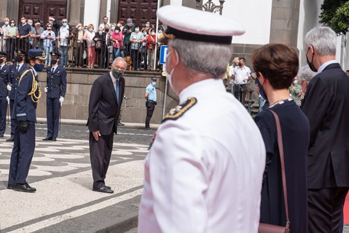 O Presidente da República recebeu honras militares prestadas pela Guarda de Honra de Cadetes da Academia da Forca Aérea durante o içar da Bandeira Nacional, enquanto a Banda da Zona Militar da Madeira executava o Hino Nacional.